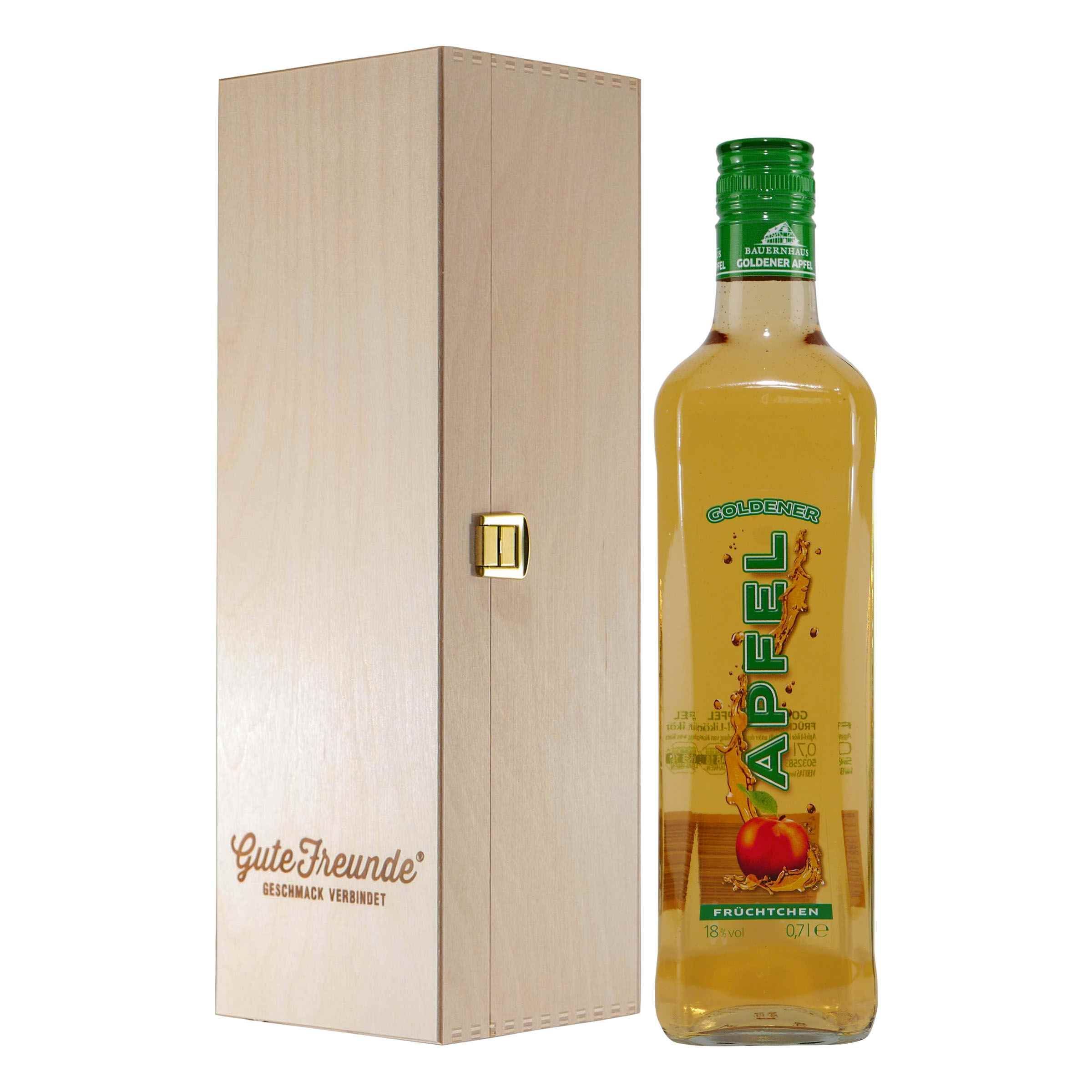 Bauernhaus Goldender Apfel Likör mit Geschenk-Holzkiste