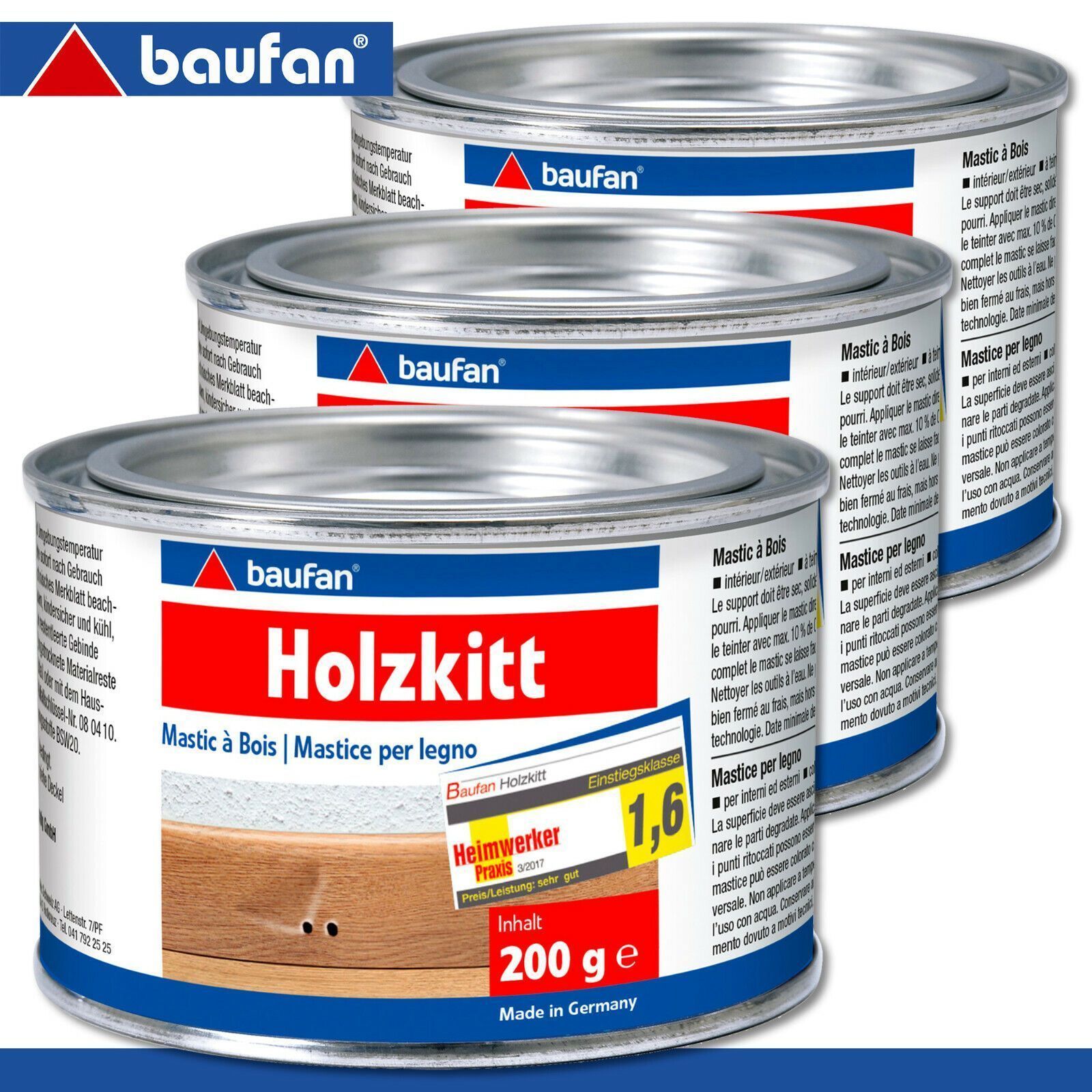 Baufan Baufan 3 x 200 g Holzkitt Holzspachtelmasse Füllkitt Gebrauchsfertig Naturfarben