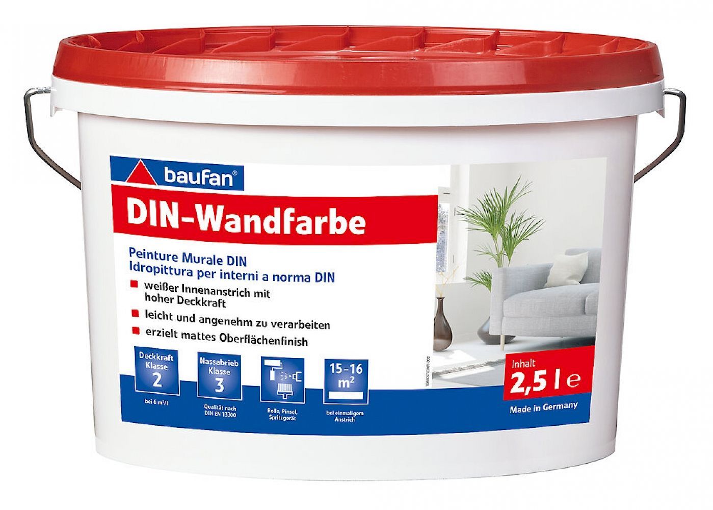 Baufan Baufan DIN-Wandfarbe 2,5 l weiß Innen-Wandfarbe waschbeständige Dispersionsfarbe