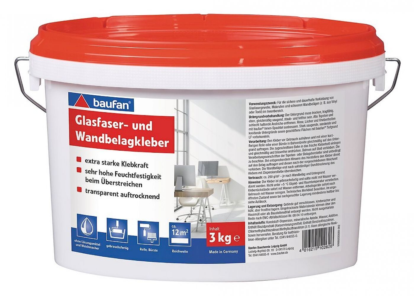 Baufan baufan® Glasfaser- und Wandbelagskleber 3 kg extra starke Klebkraft transparent