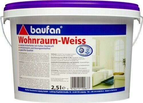 Baufan Baufan Wohnraum-Weiss 2,5 l Innen-Wandfarbe waschbeständige Dispersionsfarbe