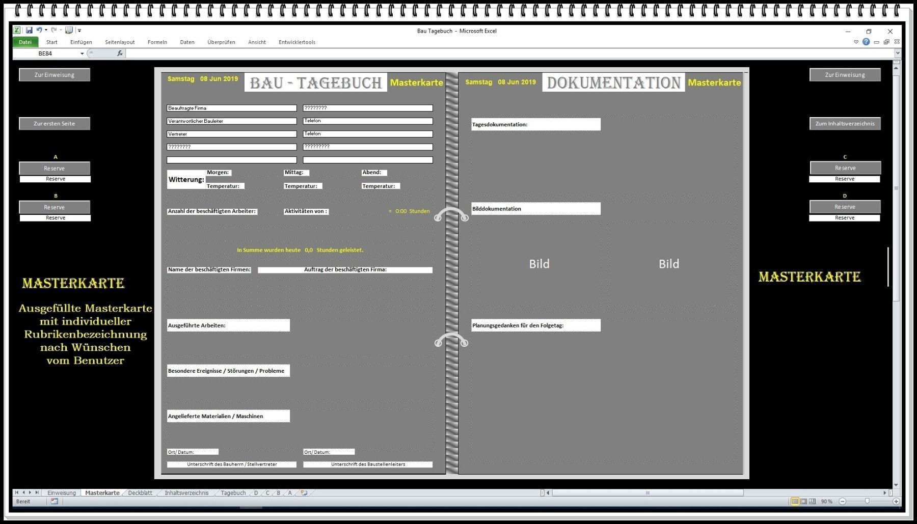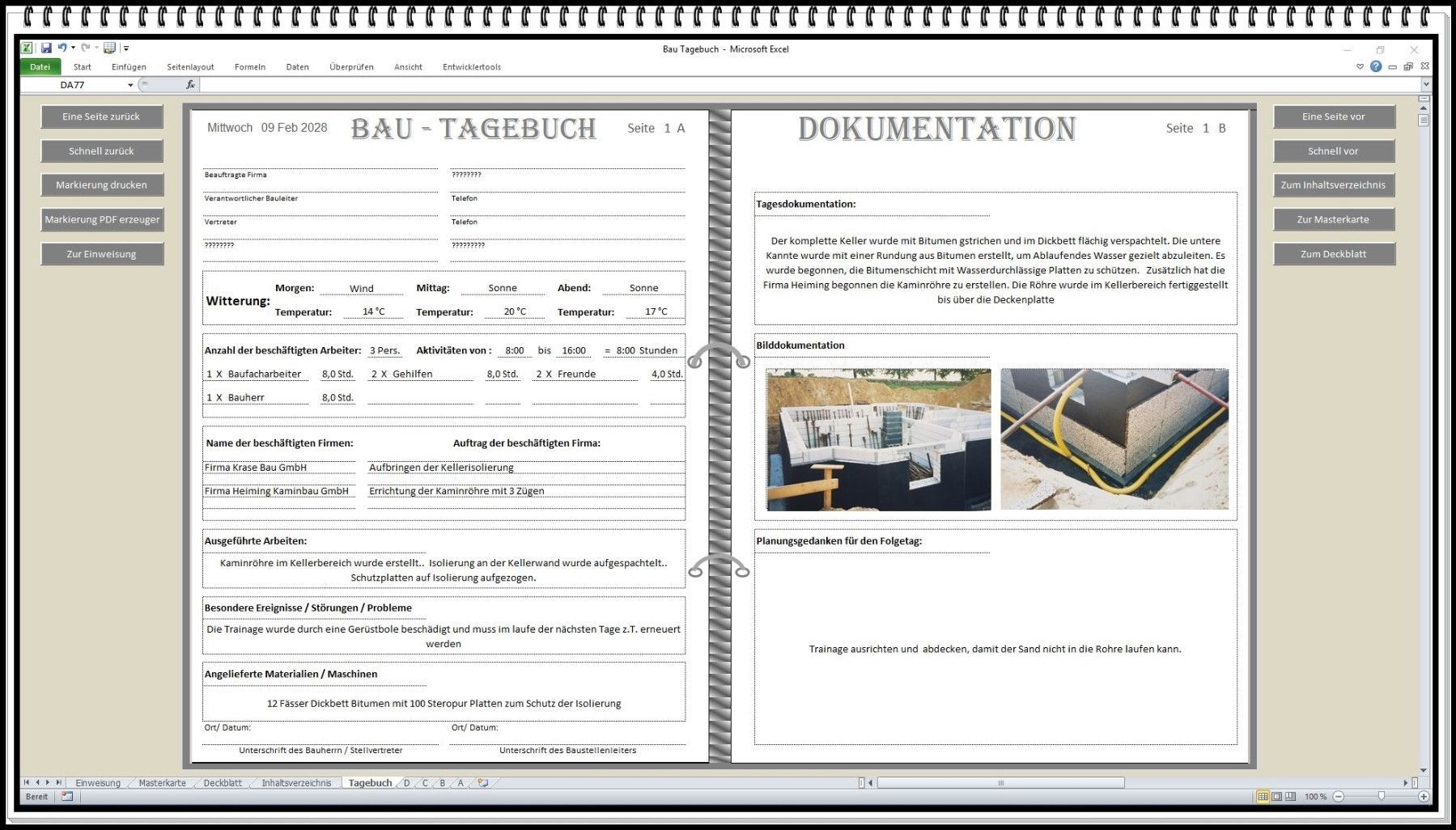 Bauherrentagebuch Software Bauherren Bauberichte Bau Tagebuch Bauleiter Excel HOAI