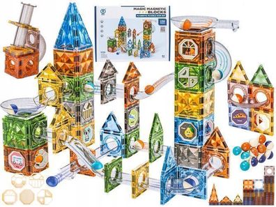 • Magnetischer Regenbogen-block-murmelbahn-bausatz, 156-TEILIG. Geschosstrommel