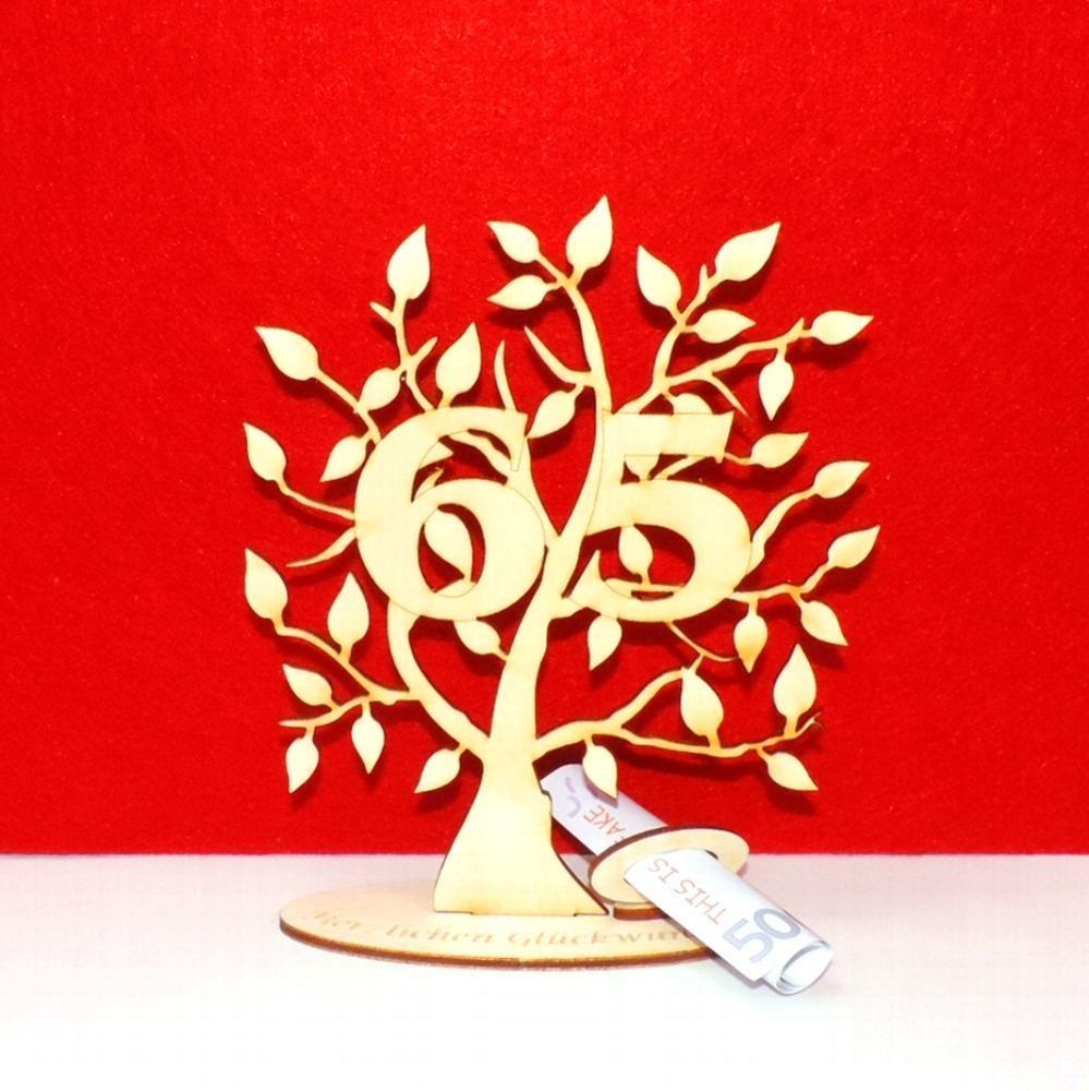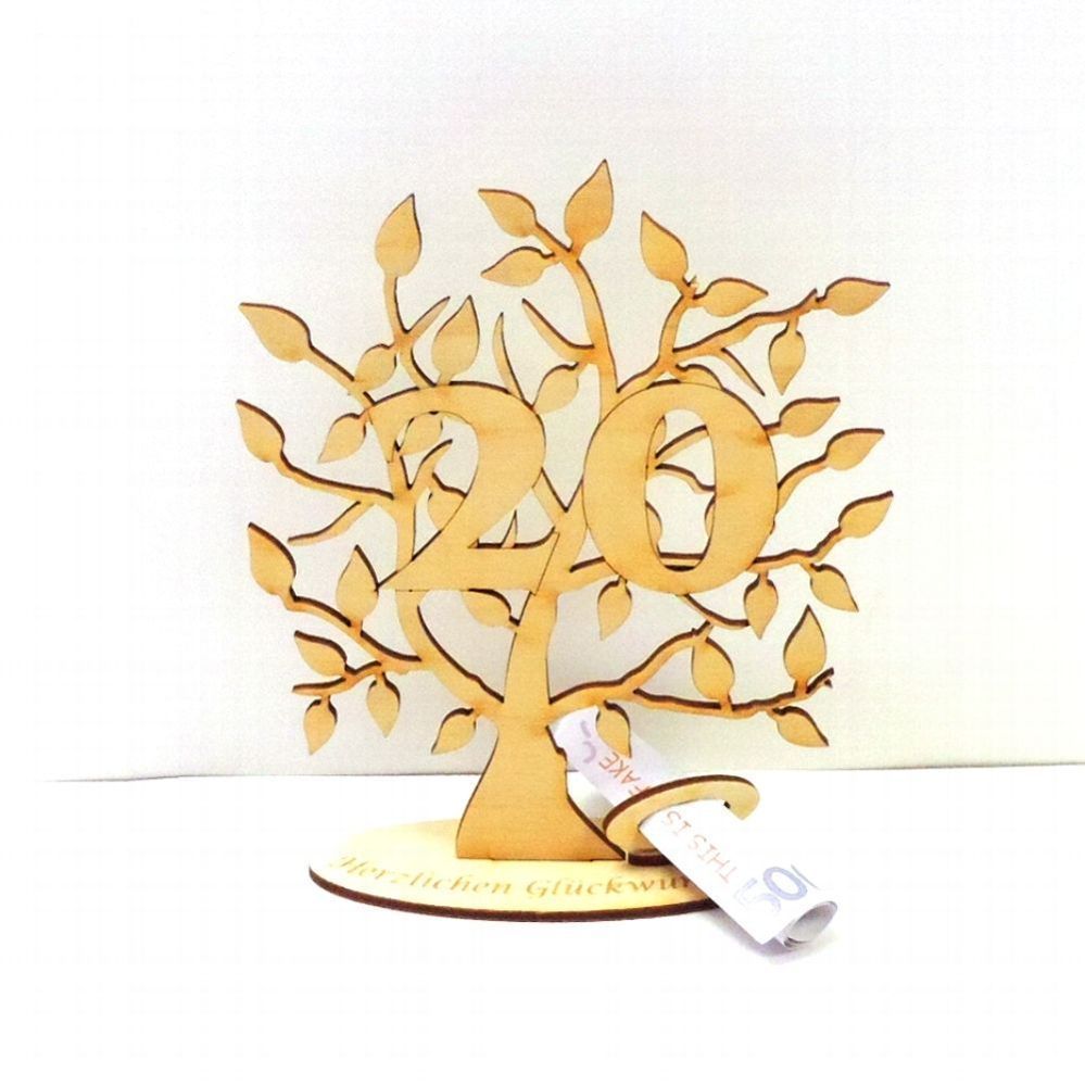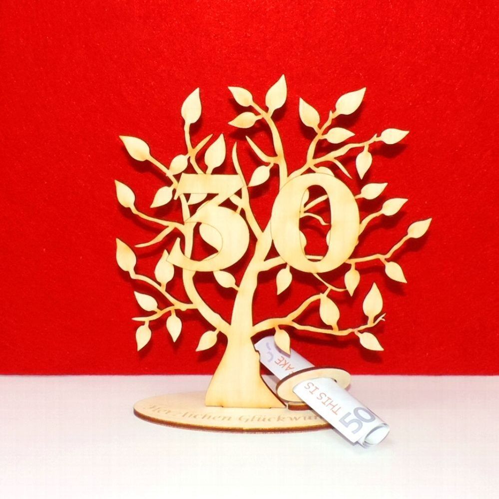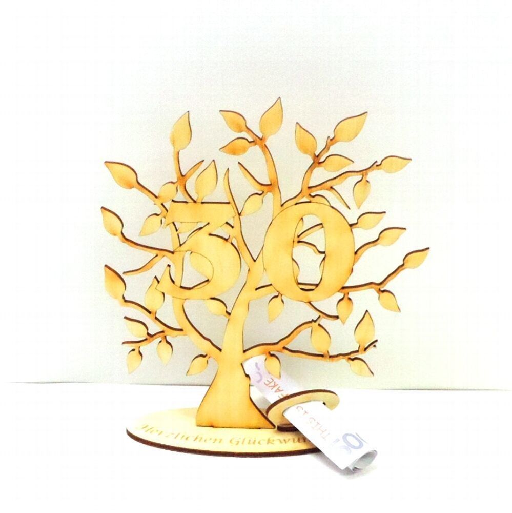 Baum zum Geburtstag,40 50 60 70 80 90 Holz 16cm Geldschein Halter gravierter Fuß