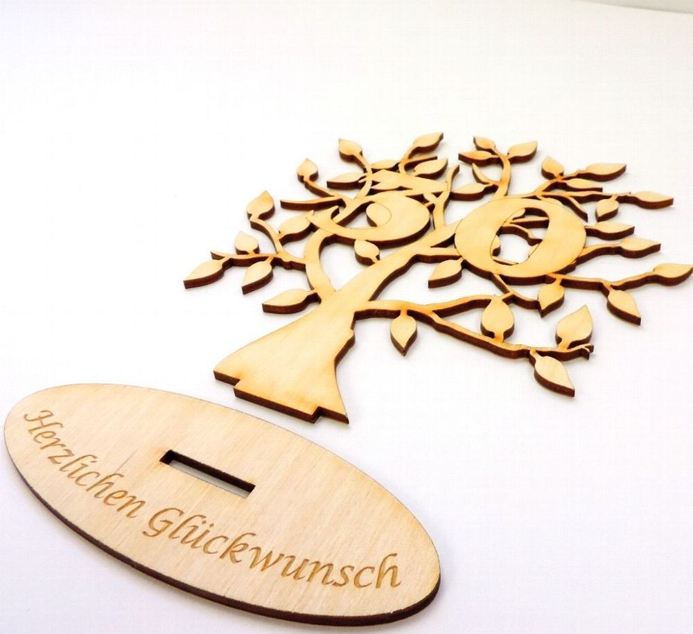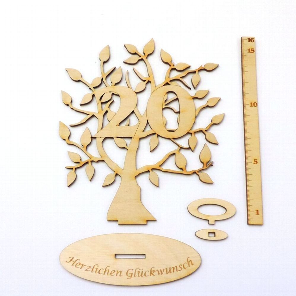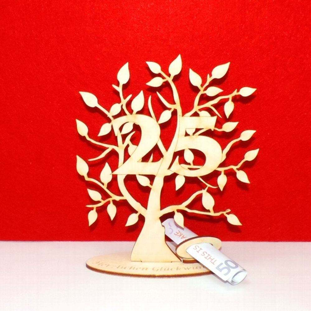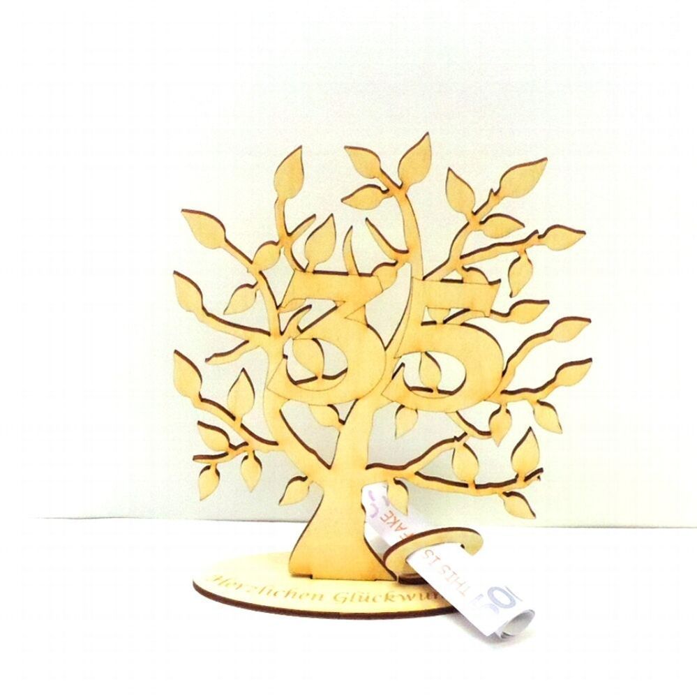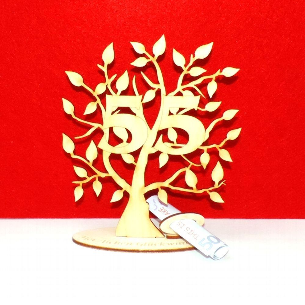 Baum zum Geburtstag,40 50 60 70 80 90 Holz 16cm Geldschein Halter gravierter Fuß