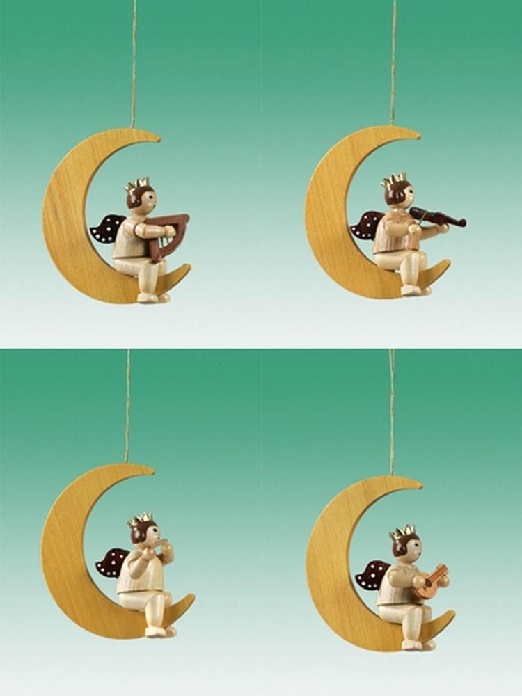 Baumbehang Engel 4tlg. im Mond mit Instrument und Krone Höhe 6,5cm NEU Weihnachte