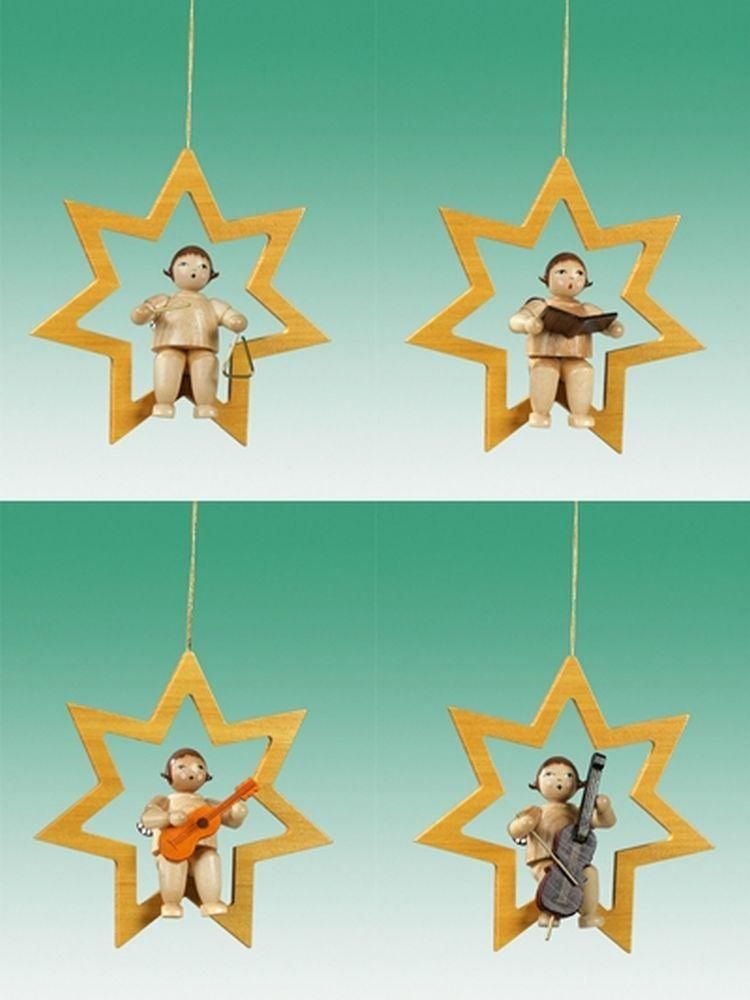Baumbehang Engel 4tlg. im Stern mit Instrument ohne Krone Höhe 6,5cm NEU Weihnach