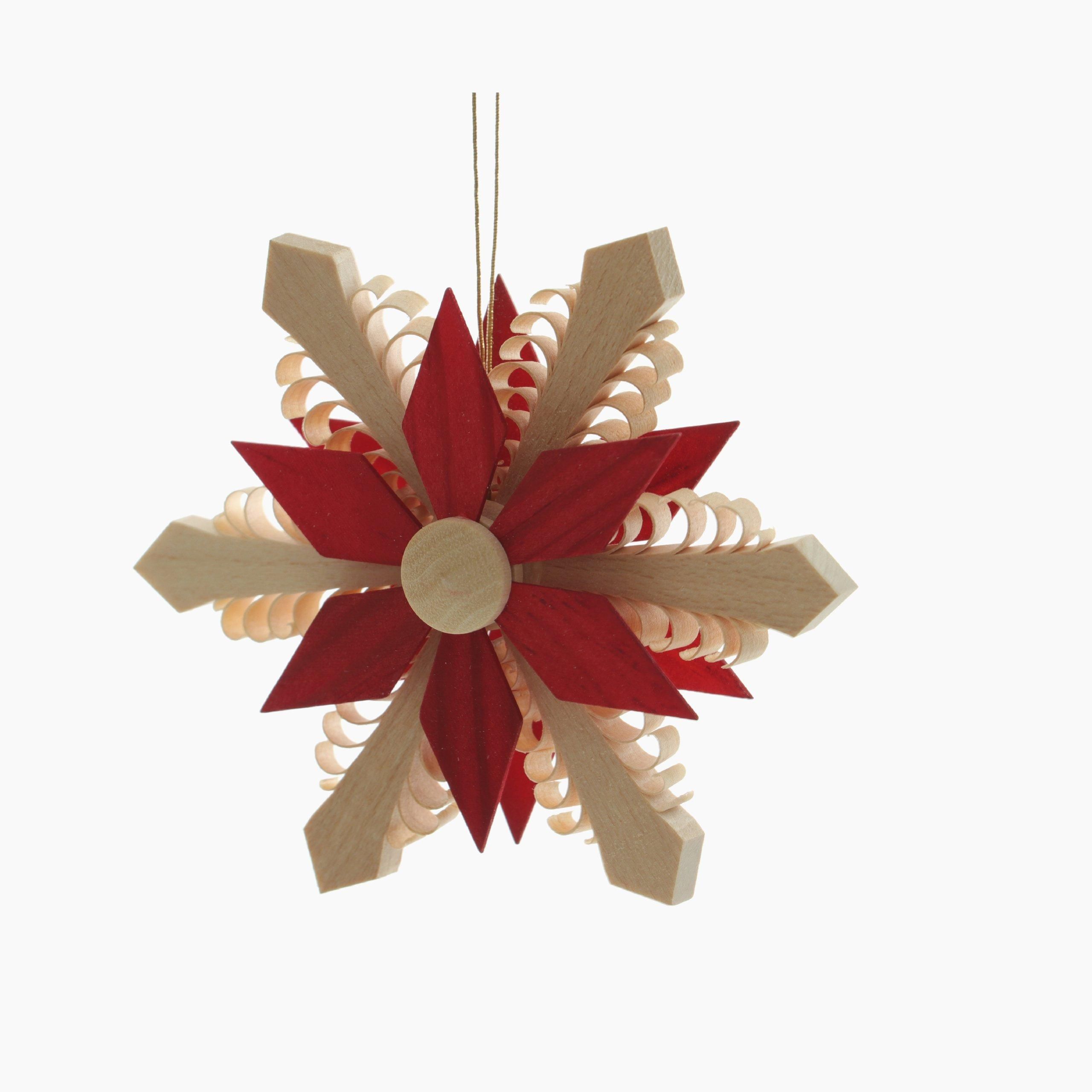 Baumbehang mit Holzstern Rot (Beidseitig) Ø9cm NEU Anhänger Baumschmuck Seiffen