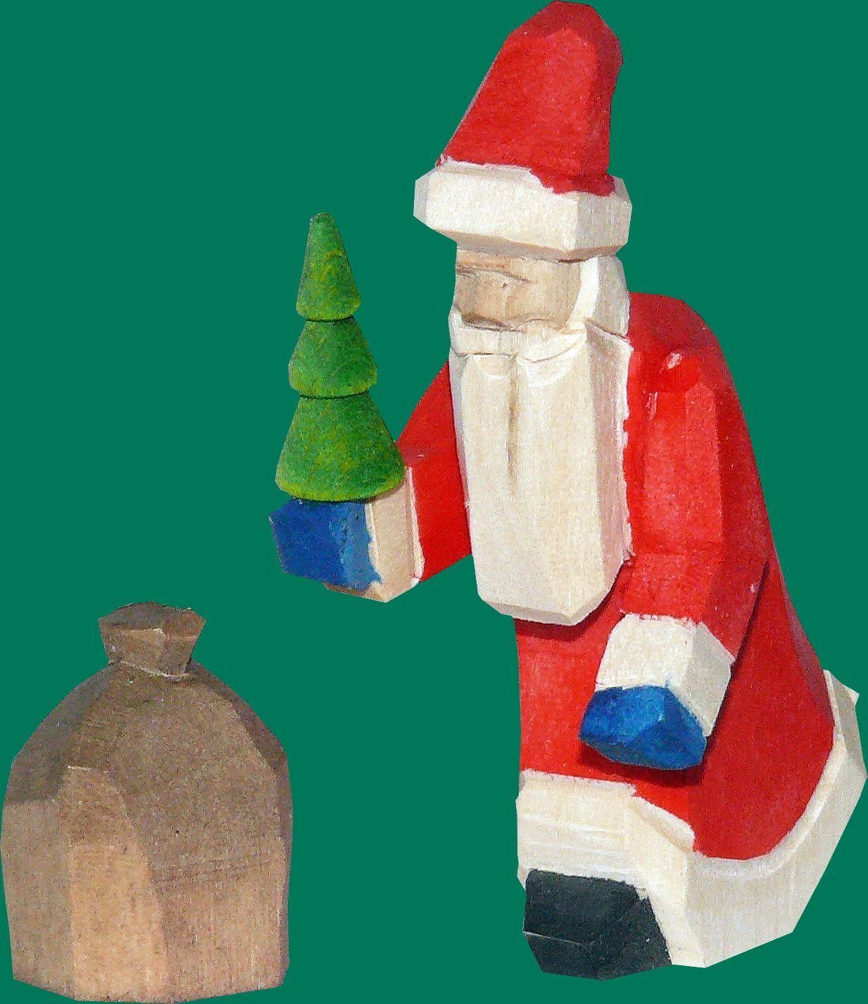 Baumbehang Weihnachtsmann mit Geschenkesack geschnitzt Höhe 6cm NEU Figuren