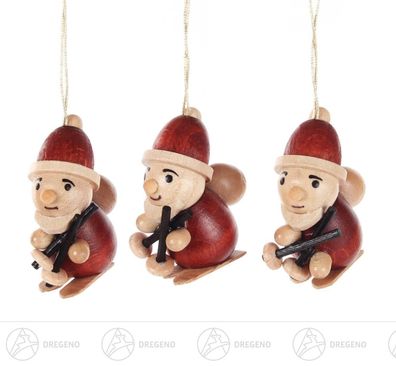 • Baumbehang Weihnachtsmann auf Ski geschnitzt Höhe 6cm NEU Figuren Schnitzen Holz