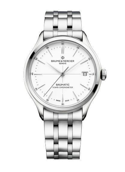 Marke: Baume et Mercier Referenz: M0A10505 Geschlecht: Herren Aufzug: Automatik Zifferblattfarbe: Weiß Gehäusematerial: Stahl Armbandmaterial: Stahl Produktionsjahr: 2024 Farbe Armband: Stahl Verschluss: Faltbar Verschlussmaterial: Stahl Gehäusedurchmesser: Durchmesser: 40 mm Gehäusehöhe: 11 mm Wass