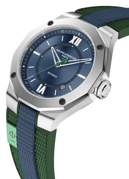 Marke: Baume et Mercier Referenz: M0A10688 Geschlecht: Mann, Frau Aufzug: Automatik Zifferblattfarbe: Blau Gehäusematerial: Stahl Armbandmaterial: Gummi Produktionsjahr: 2024 Armbandfarbe: Grün Verschluss: Stahl, satiniert Verschlussmaterial: Stahl Gehäusedurchmesser: Durchmesser: 42,1 x 39,05 mm Ge