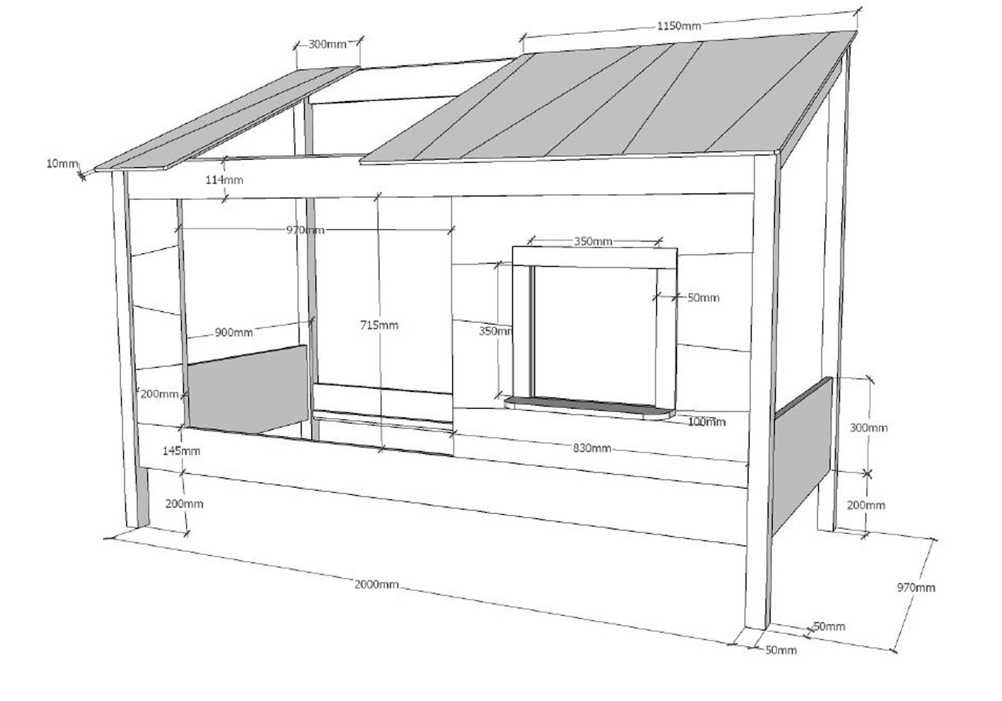 Baumhaus Bett Katalyn 214x105x159 Kinderbett MDF+Massivholz Weiß