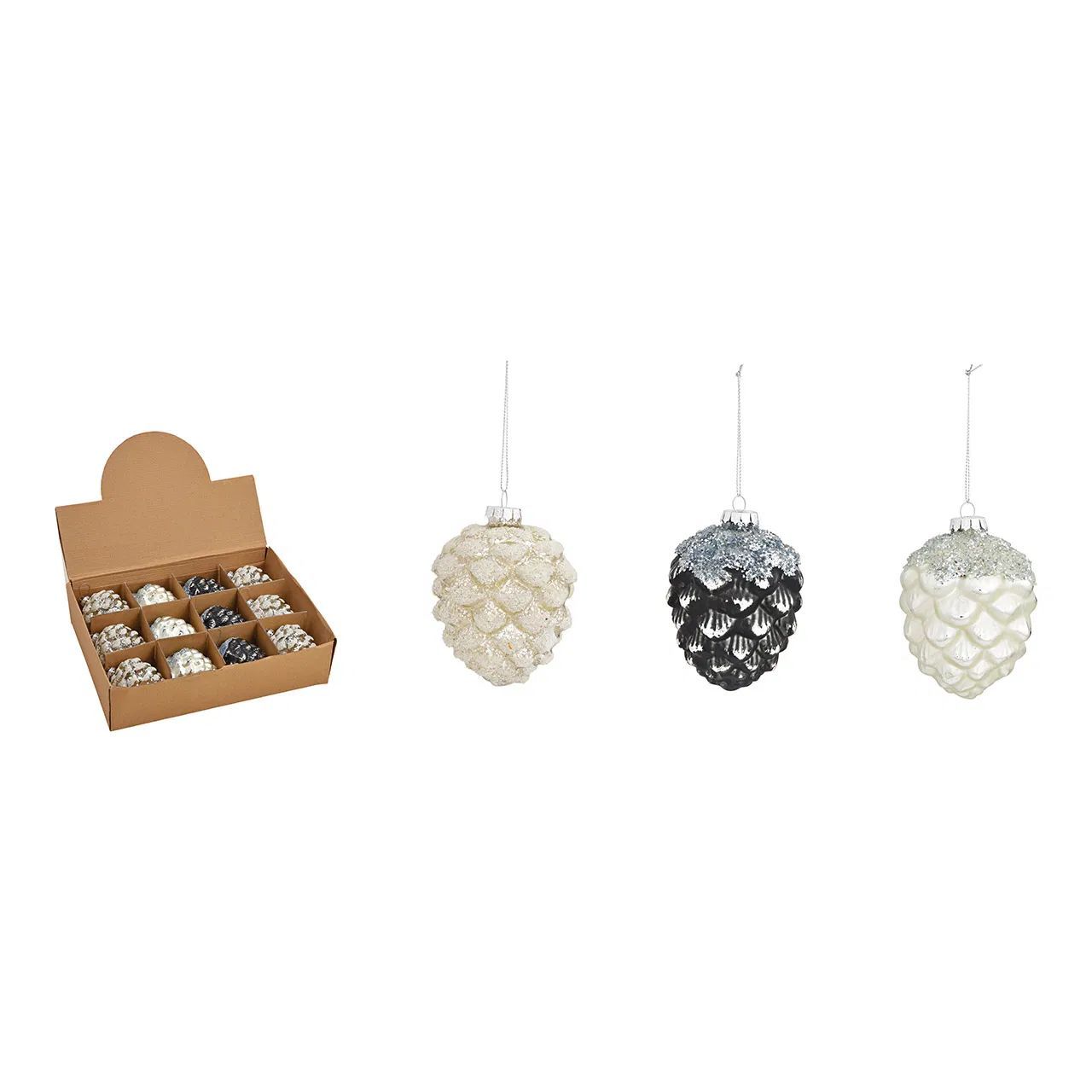 Wurm Baumkugeln Tannenzapfen 12 Stück Glas