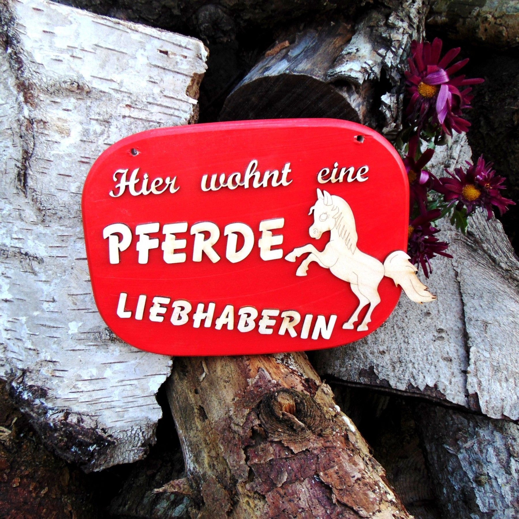 Hier wohnt eine Pferdeliebhaberin Bemaltes Holzschild in der Größe 24 cm mal 18 cm Gerne auch in einer anderen Farbe Tolles Geschenk für Pferdefans
