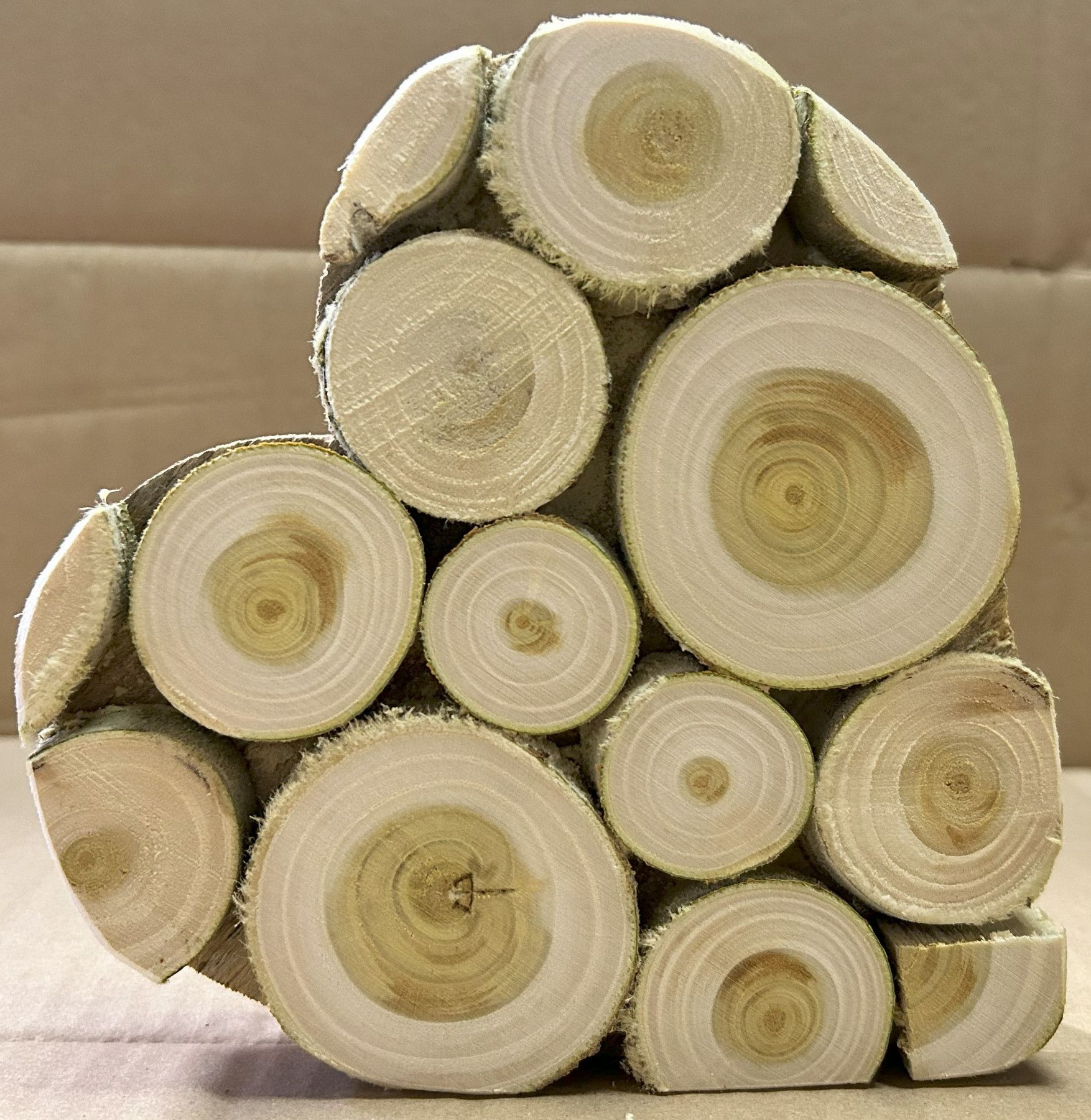 Herz aus Baumscheiben ca. 20 cm Toleranz +- 2 cm Es können eventuell zusätzliche Risse kommen, dies ist kein Mangel. Es handelt sich bei unserer Ware um individuelle Naturprodukte.