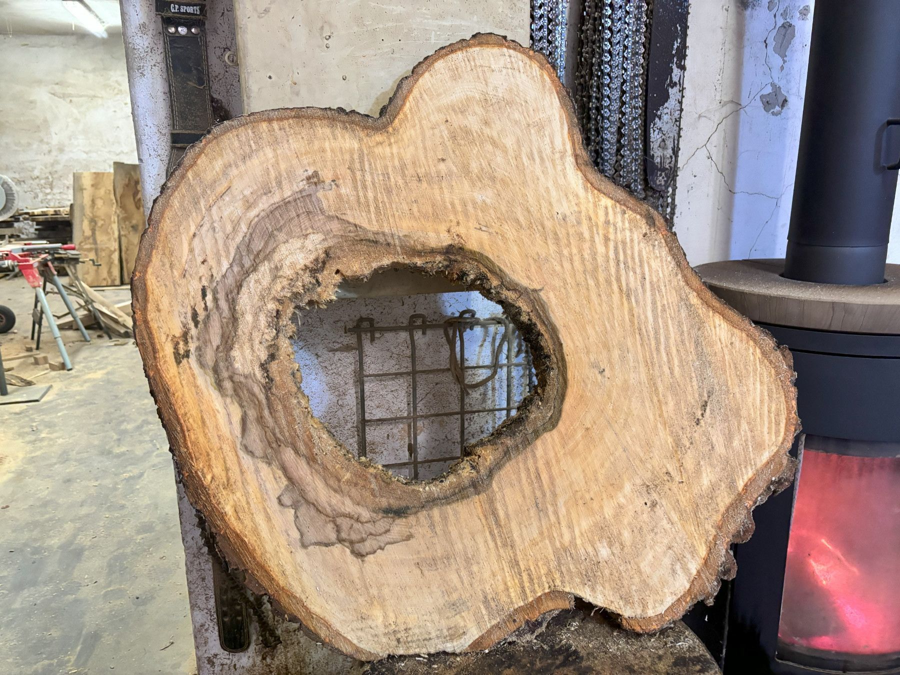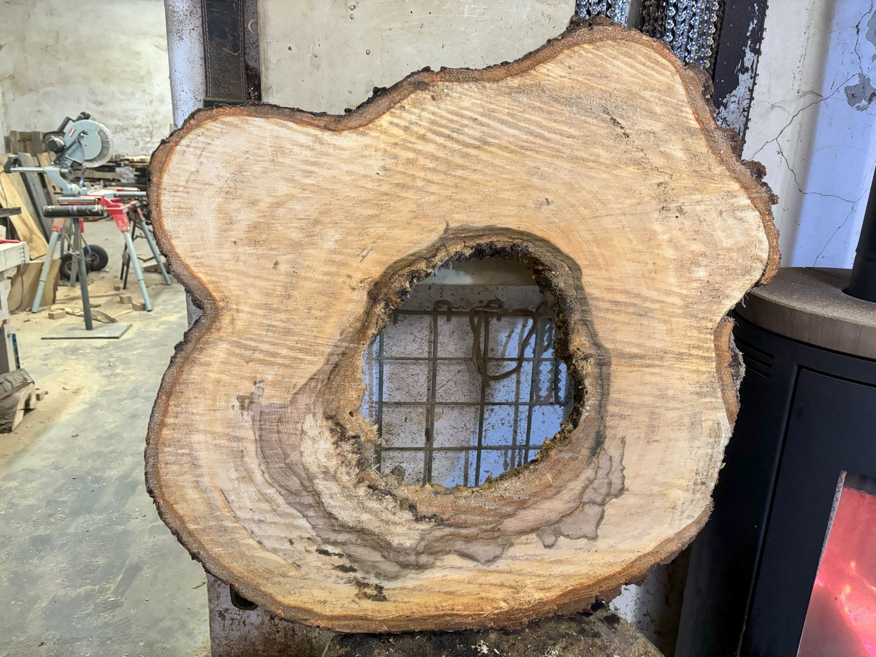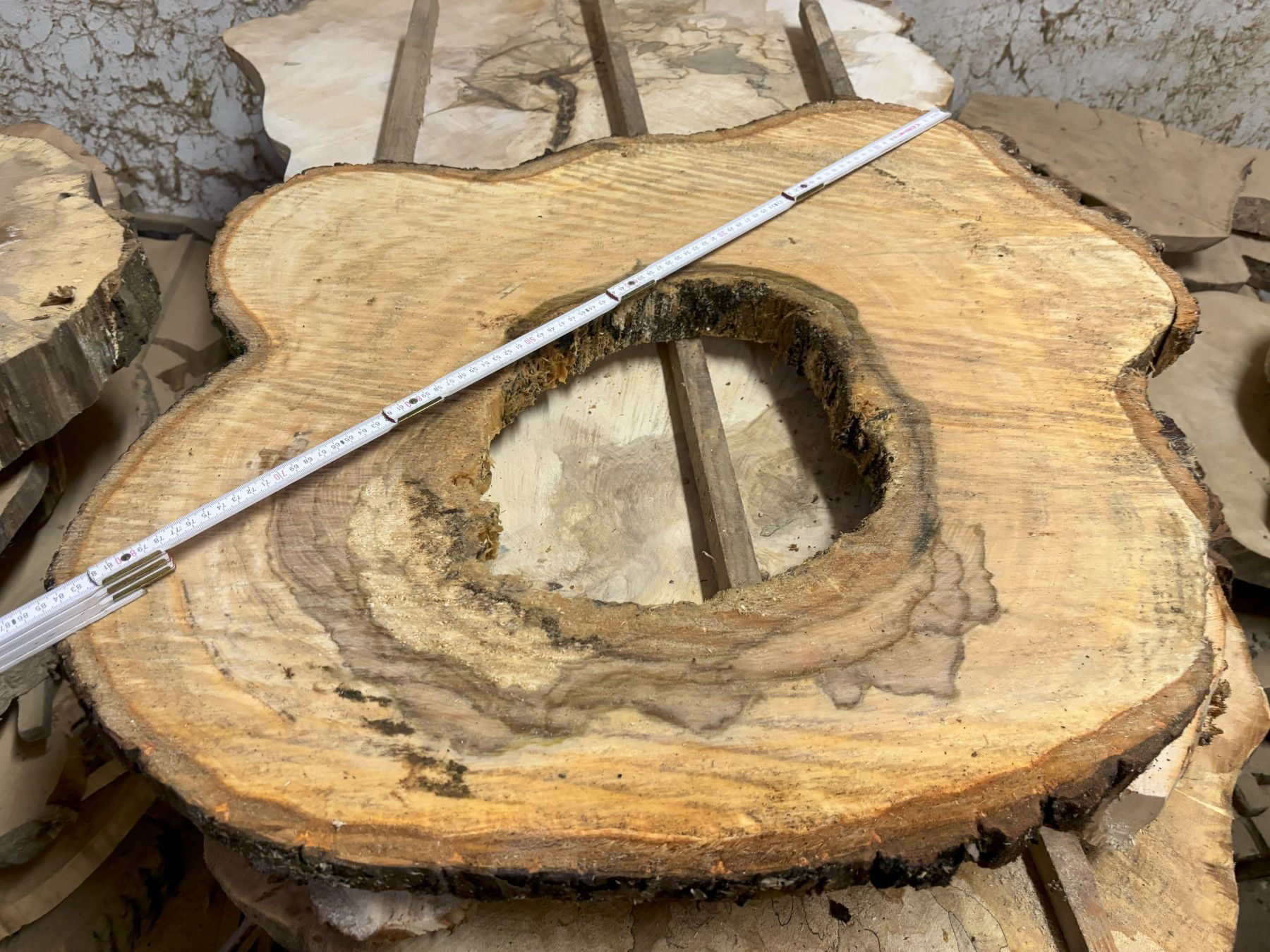 Baumscheibe, Holzscheibe, Tischplatte, ca.80-85/5cm, Epoxid, hohle Baumscheibe