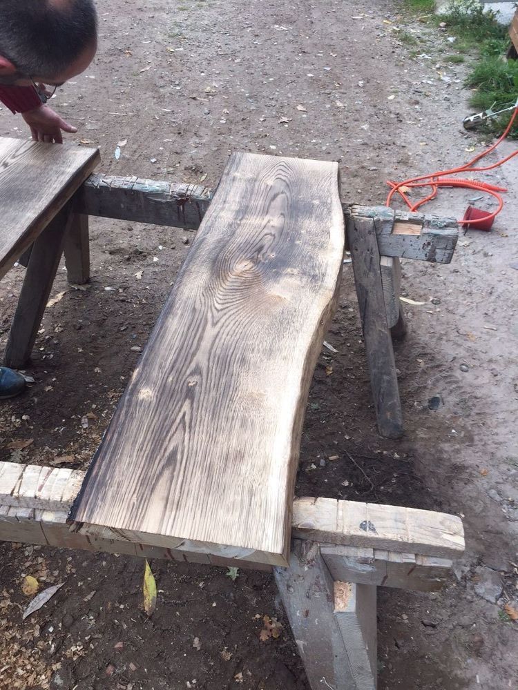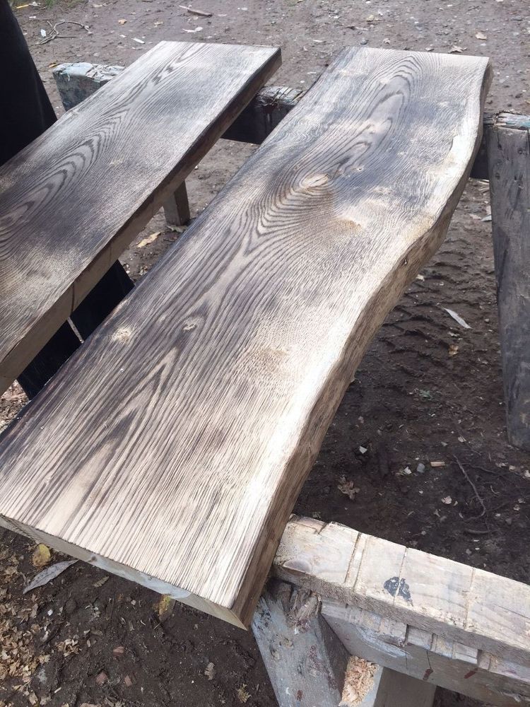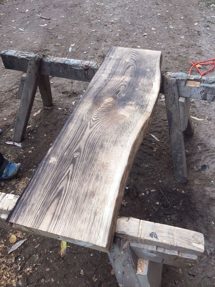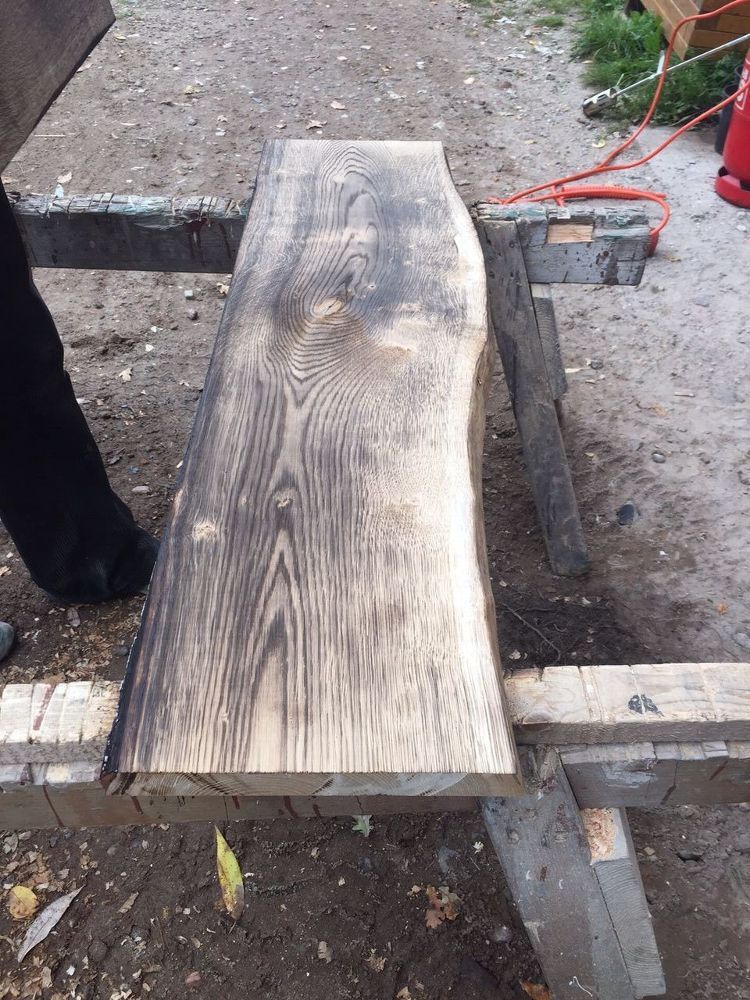 Baumscheibe, Waschtisch, Tischplatte, Eiche, gerade/ Baumkante, geflammt, 120cm