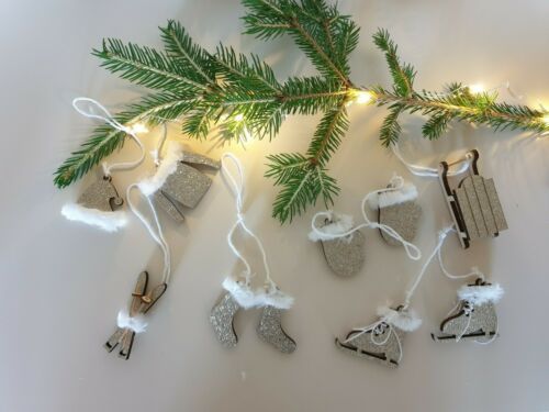 Baumschmuck Weihnachten Tannenbaum Christbaum Hänger Deko Winter Holz 6er Set