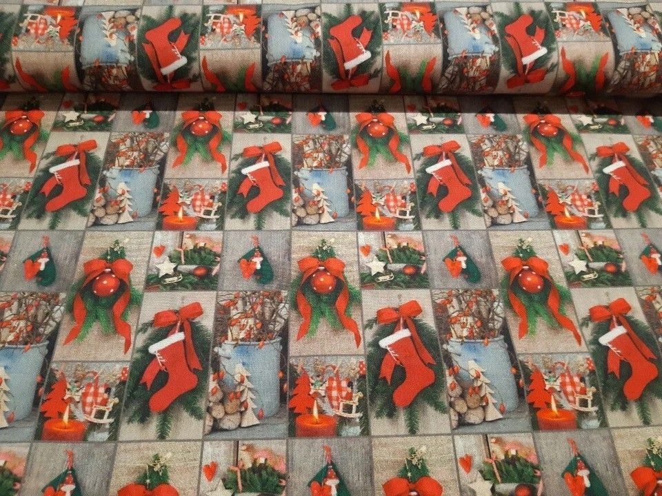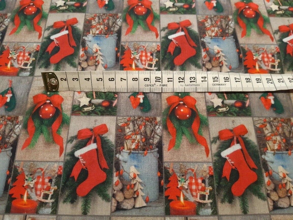 Hochwertiger Baumwolldruck Nikolausstiefel Patchworkdruck mit Nikolausstiefel und anderen Weihnachtsmotiven grau - rot - grün 100 % Baumwolle 140 cm breit Gewicht: ca. 110 g qm Meterware Abgabe in 50-cm-Schritten Für den Festpreis von EUR 6,00 erhalten Sie 0,5 lfd Meter bei 140 cm Breite Grundpreis