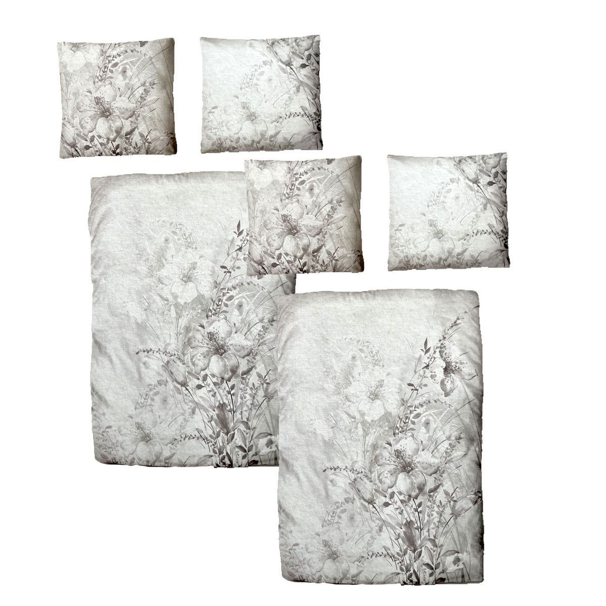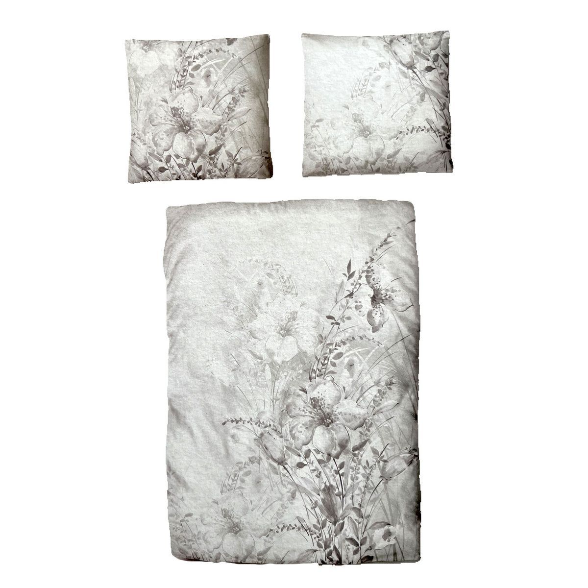 Baumwolle Satin Bettwäsche Blumen Grau 135x200 80x80 Set 2tlg. 4tlg