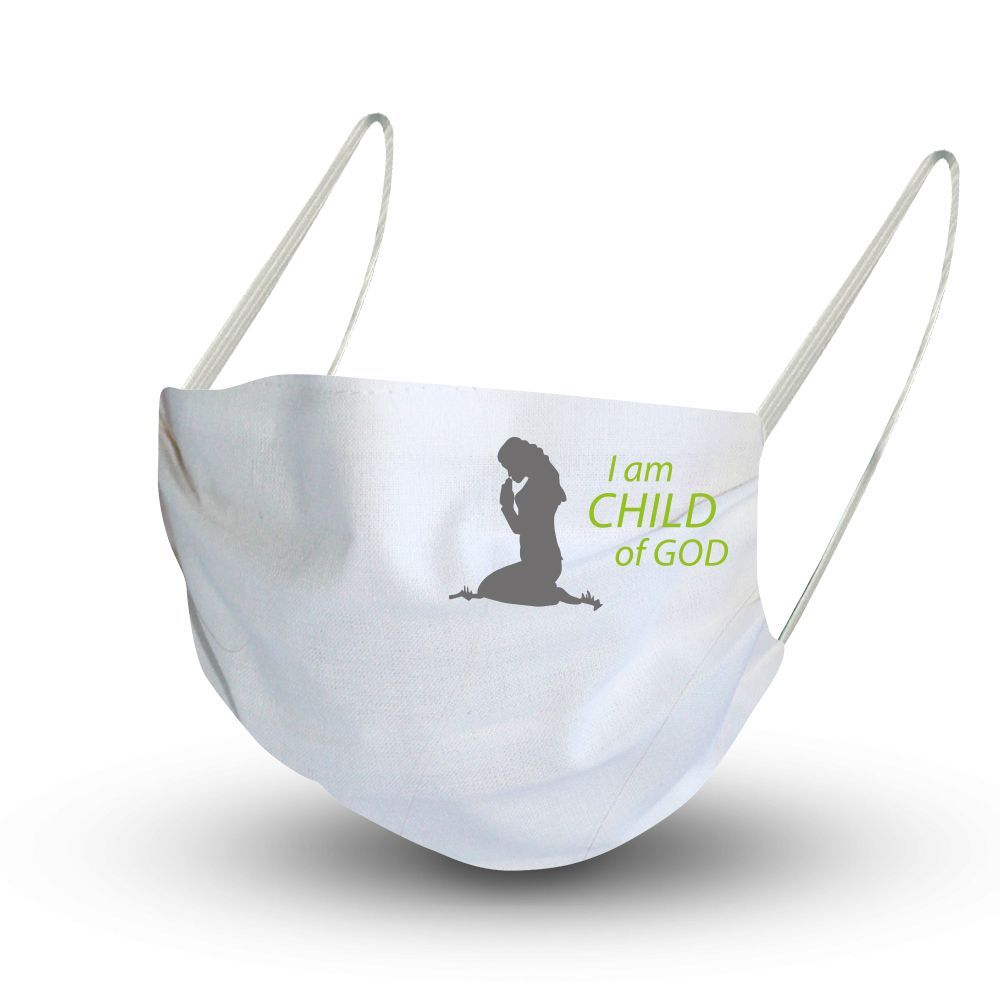Baumwollmaske in WEISS mit zertifiziertem Innenvlies - Zitat: I Am Child Of God - 159