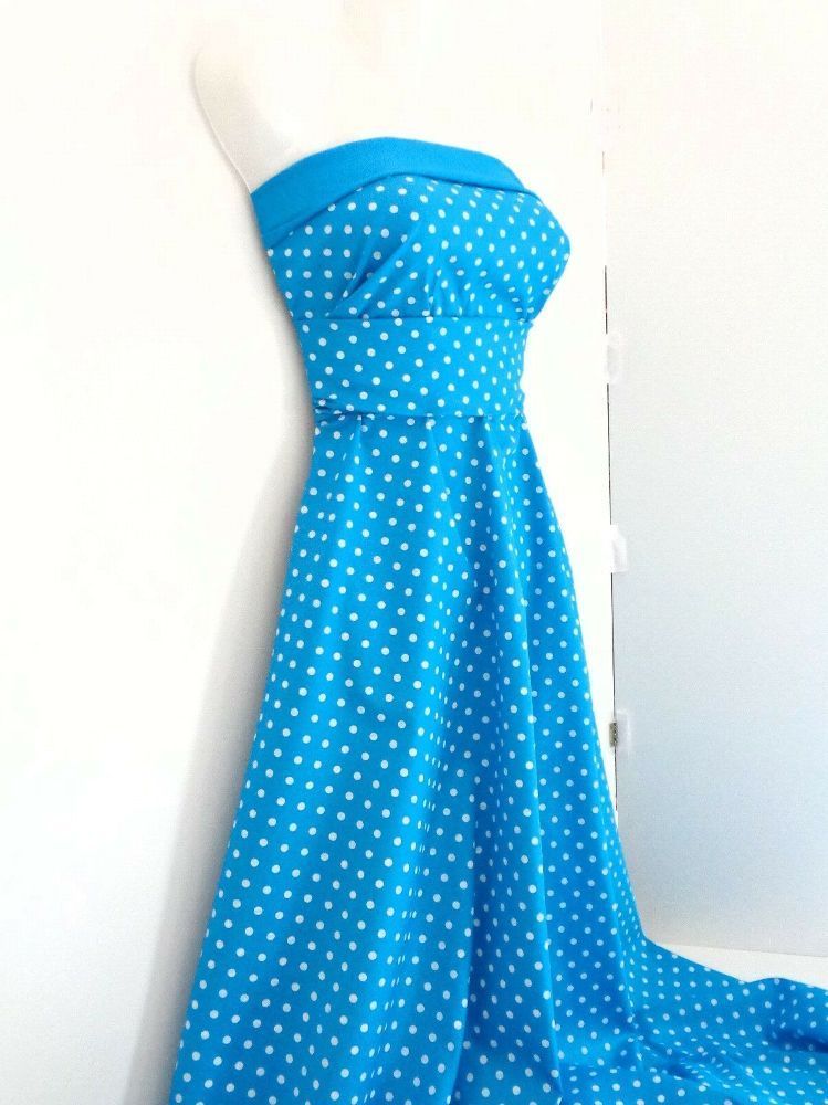 Baumwollstoff,145 cm breit, Punkte Baumwolle,, Meterware, türkis, weiß