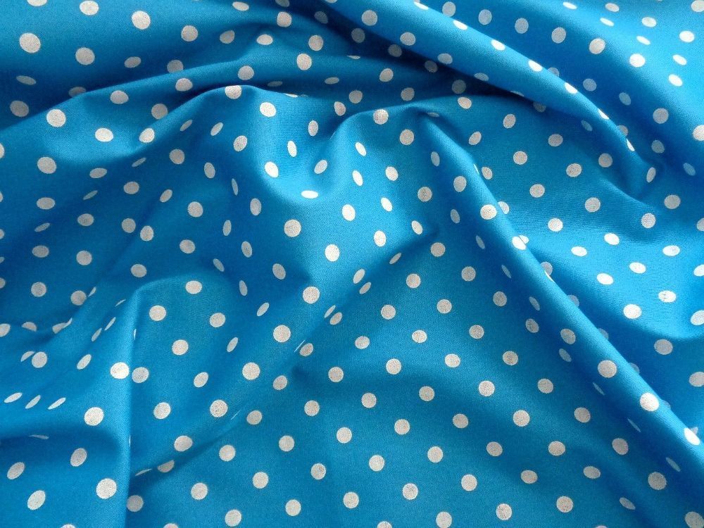Baumwollstoff,145 cm breit, Punkte Baumwolle, , Meterware, türkis, weiß
