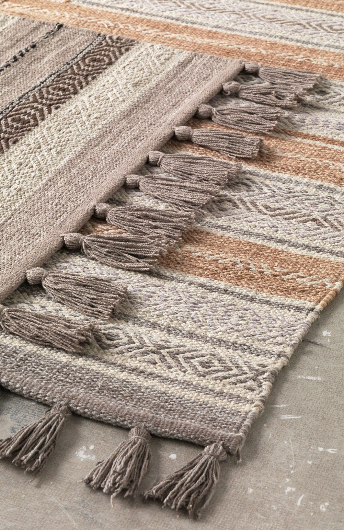 Der Teppich aus Baumwolle und Jute hat die Maße 60x120 cm und ist handgewebt. Er