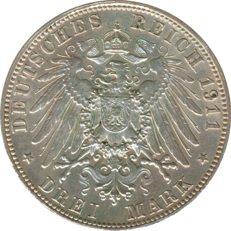 Bayern 3 Mark 1911 D 90. Geburtstag von Prinzregent Luitpold Silber*