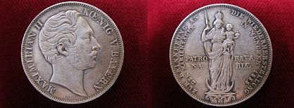 BAYERN DOPPELGULDEN (Mariengulden) 1855 König MAXIMILIAN II. (1848-1864), Randschrift.: Zwey Gulden, Rs.: Muttergottesstatue, Mariensäule, Katalog Jaeger 84, AKS 168
