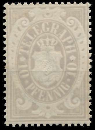 BAYERN TELEGRAFENMARKEN Nr 16a postfrisch 10 Pf, Telegrafenmarke mit Wasserzeichen 6 Bogenlinien letzte Ausgabe, grünlichgrau 0.71€ incl. MwSt: Differenzbesteuert zzgl. Versandkosten Bestell-Nr.: 805D12 Katalog-Nr: MICHEL (16 a) Katalogpreis: 1,3 EUR Qualität: Normal Erhaltung: Postfrisch ** Ei
