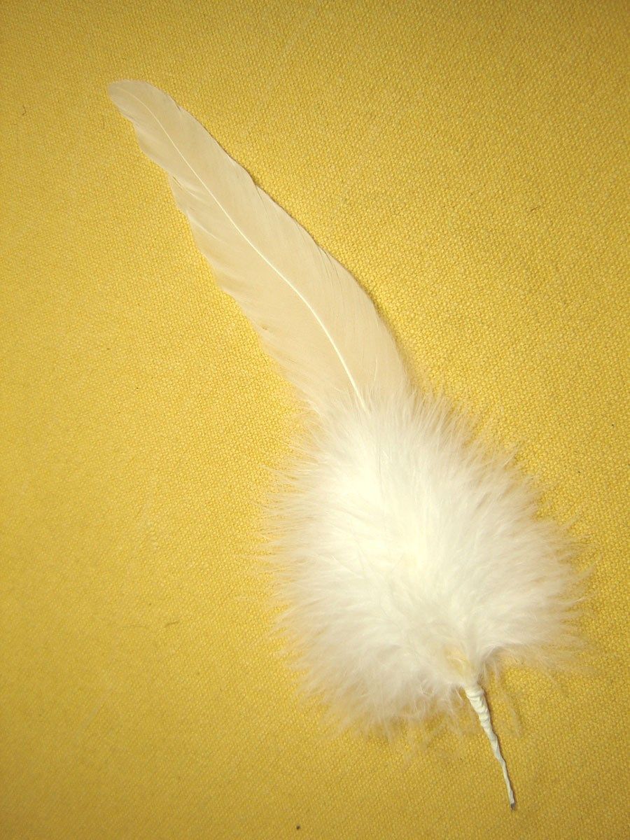 . Musikantenfeder Schützenfeder Hutfeder einfedrig klassische Hutfeder für Trachtenverein , Musikkapelle Schützenverein Hahnenschlappengesteck weiß mit Flaum Federlänge ist ca 20 cm auf Wunsch auch mit Halter , H362III 6,- Euro Natürlich werden keine Federn oder Haare von Tieren verwendet , die unte
