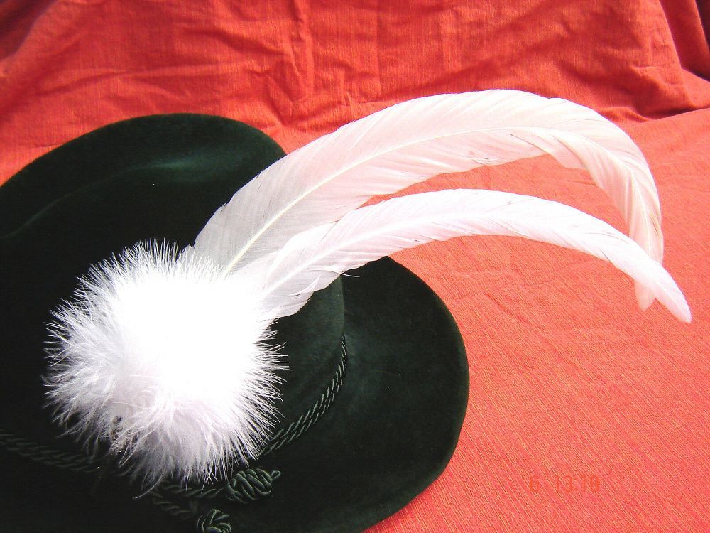bayrische Hutfeder Trachtenfeder Hahnenschlappen weiß 2fach ca 30cm mit Halter