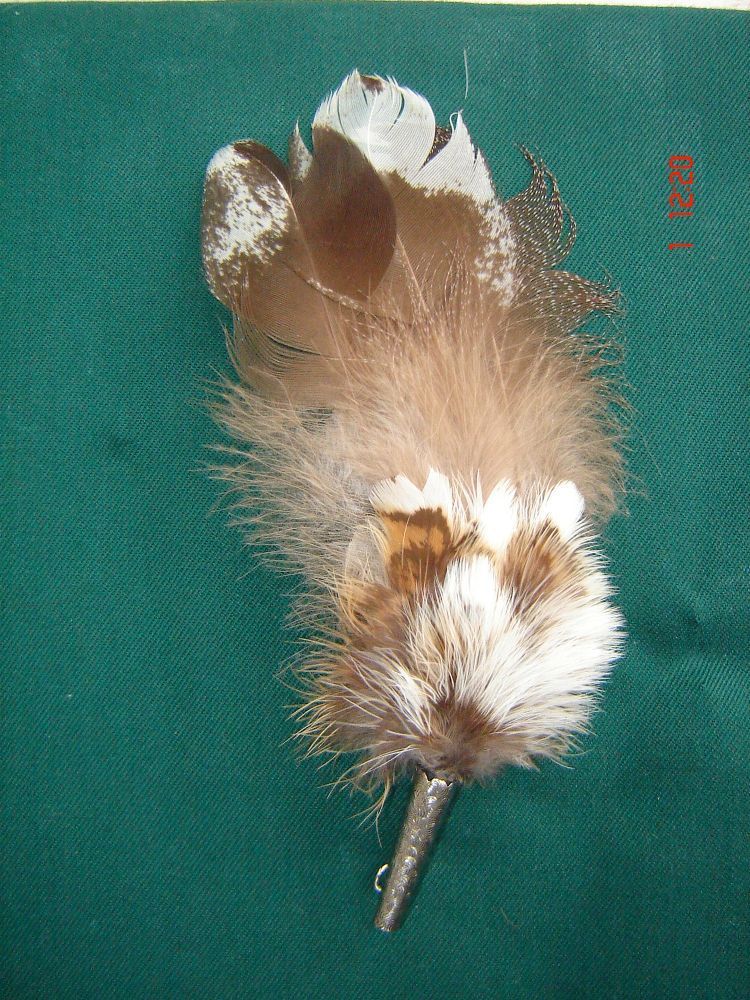 Hutschmuck , Hutfeder klassischer Hutschmuck für Trachtenhut Vereinshut , Schützenhut oder auch für den Wanderhut Herrenhut Trachtenhut Federgesteck mit Hülse in beige-braun Naturtönen filigraner Halter mit Nadel zum Anstecken Gesamthöhe insgesamt ca 17 cm Natürlich werden keine Federn oder Haare vo