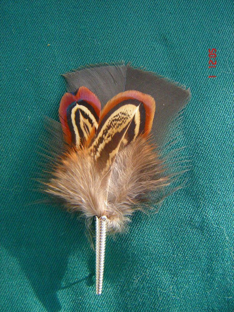 Hutschmuck , Hutfeder die Geschenkidee für den Hutträger klassischer Hutschmuck für Trachtenhut Vereinshut , Schützenhut oder auch für den Wanderhut , Herrenhut Federgesteck mit Hülse kleines braunes Federgesteck silberfarbener Halter mit Nadel zum Anstecken Gesamthöhe insgesamt ca 8,5 cm Natürlich