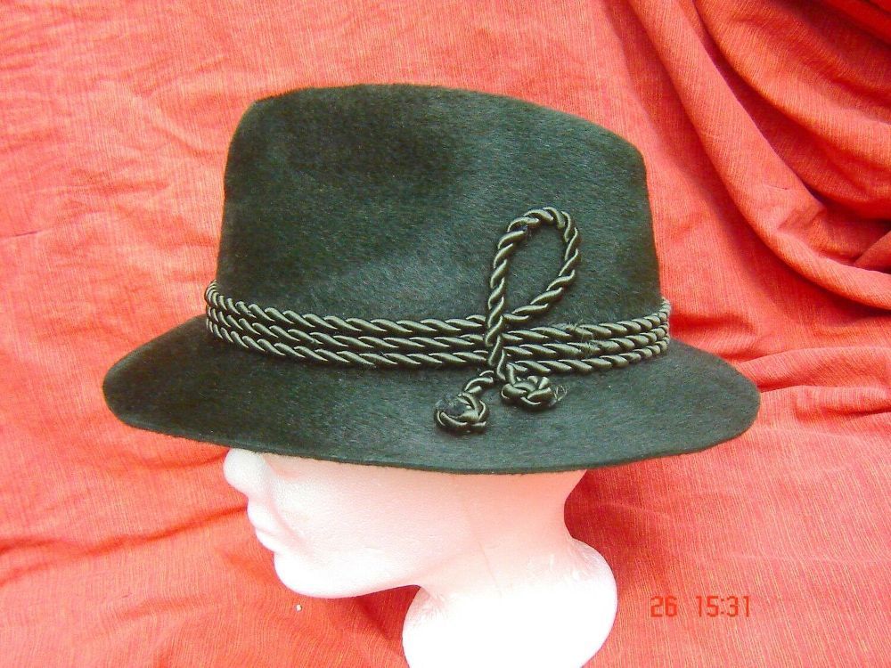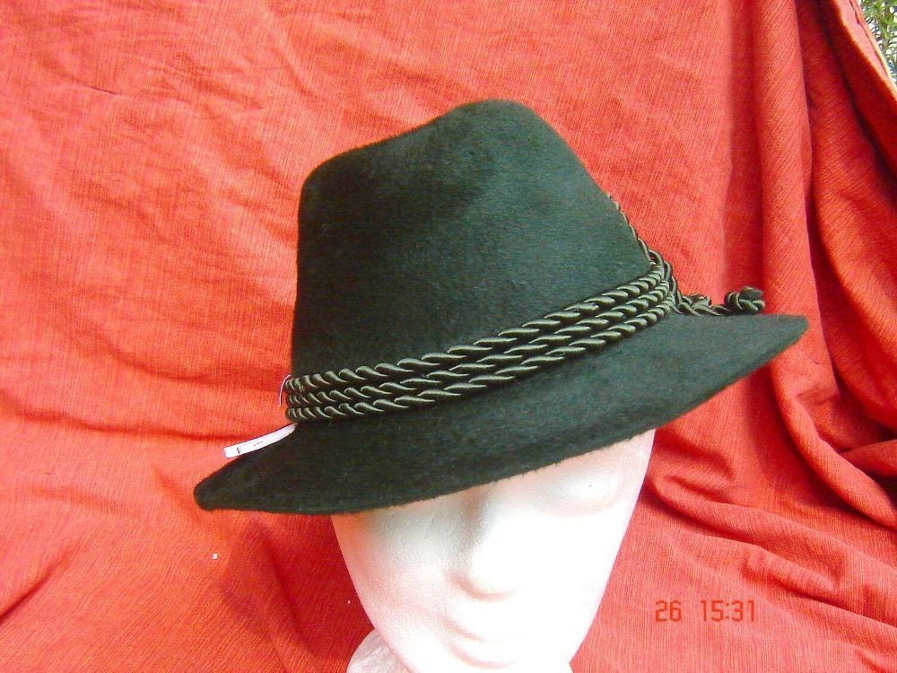 . klassischer Herren Trachtenhut klassische Trachtenform zur Lederhose, zum bayrischen Gwand aus hochwertigem Velour 100% Hasenhaarfilz Haarfilz ausgezeichnet verarbeitet mit Stretch Innenband und Innenfutter 100% Viscose der Rand ist ca 6,5 cm breit als Garnitur 3x Kordel in grün Größe wählbar 55 ,