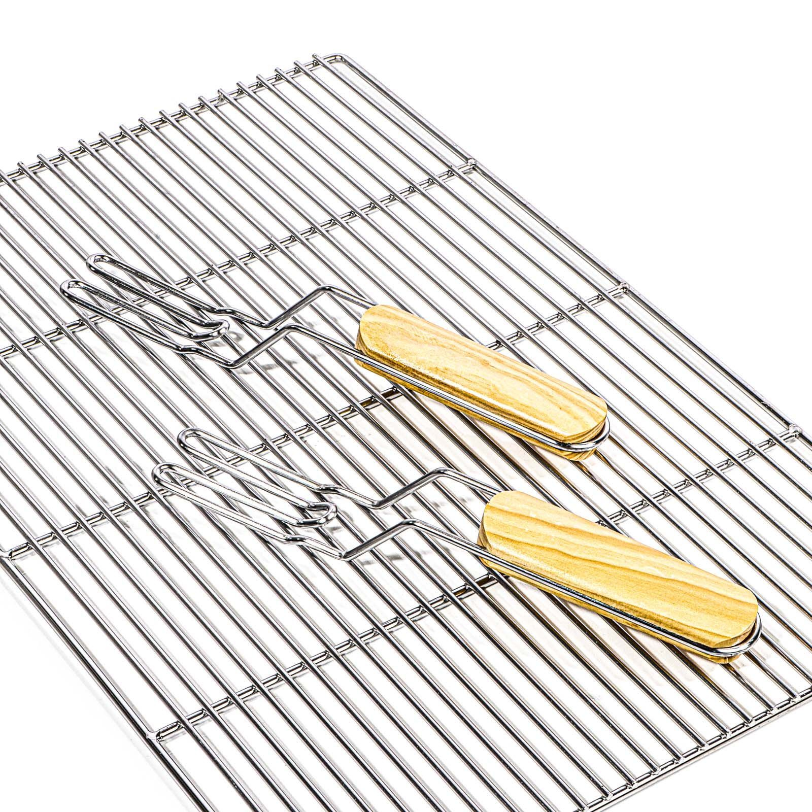BBQ Grillrost Eckig 54x34cm Edelstahl Grillgitter Handgriffe Gasgrill Kugelgrill