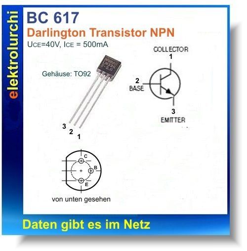 BC617, PNP Silizium Darlington Transistor, 40V, 500mA, 600mW, TO92, 5St.