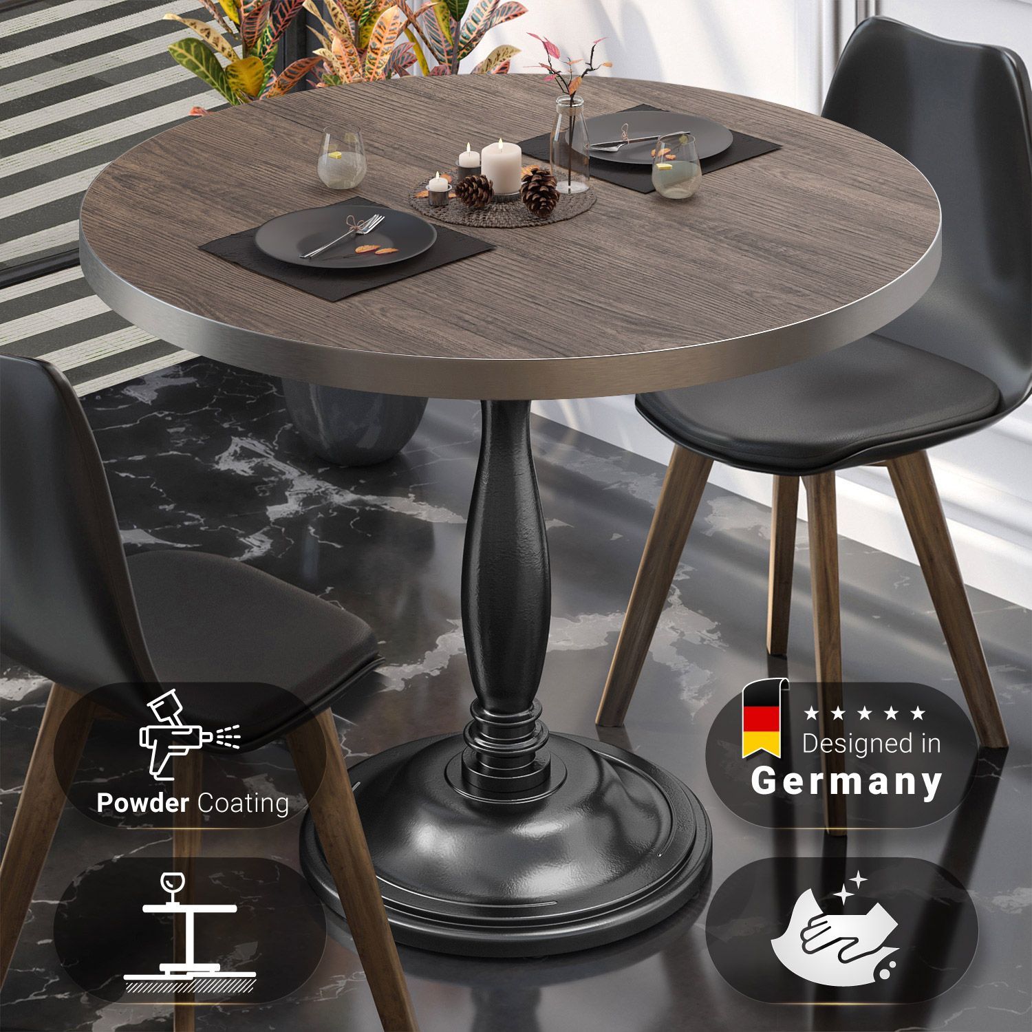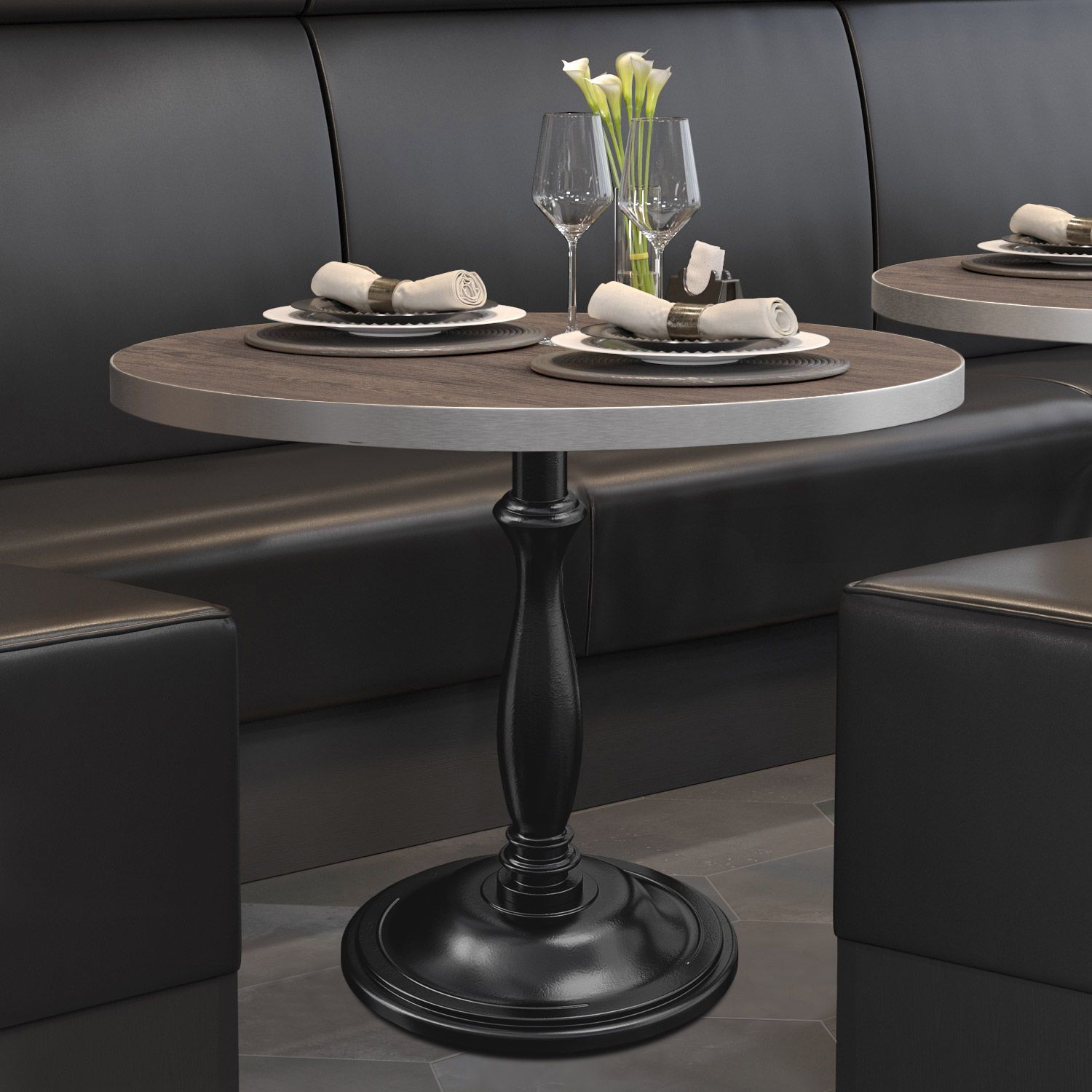 BD | Bistro Tisch | Ø 60 x 75,5 cm | Rund | Edelstahl Rand | Light Wenge / Schwarz |