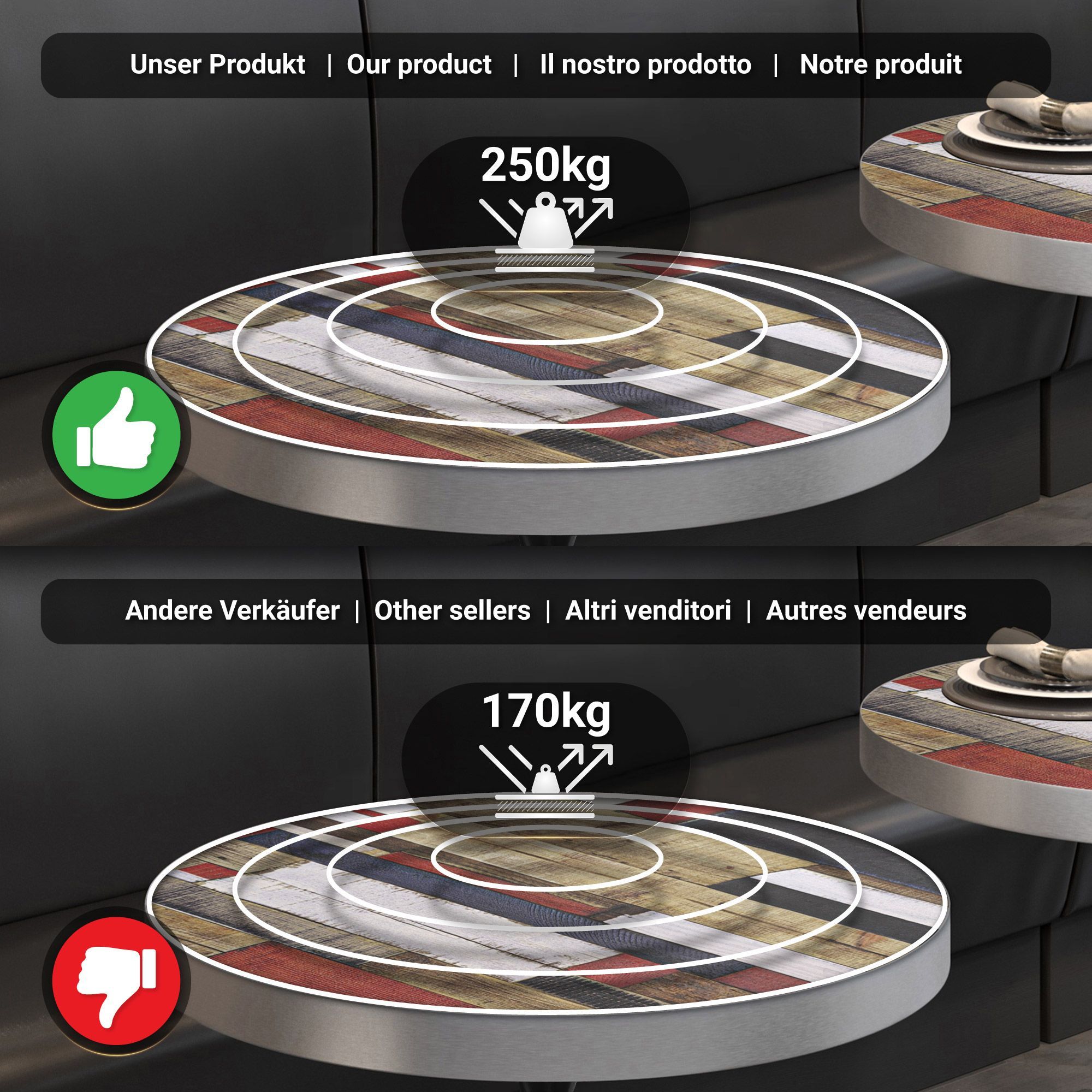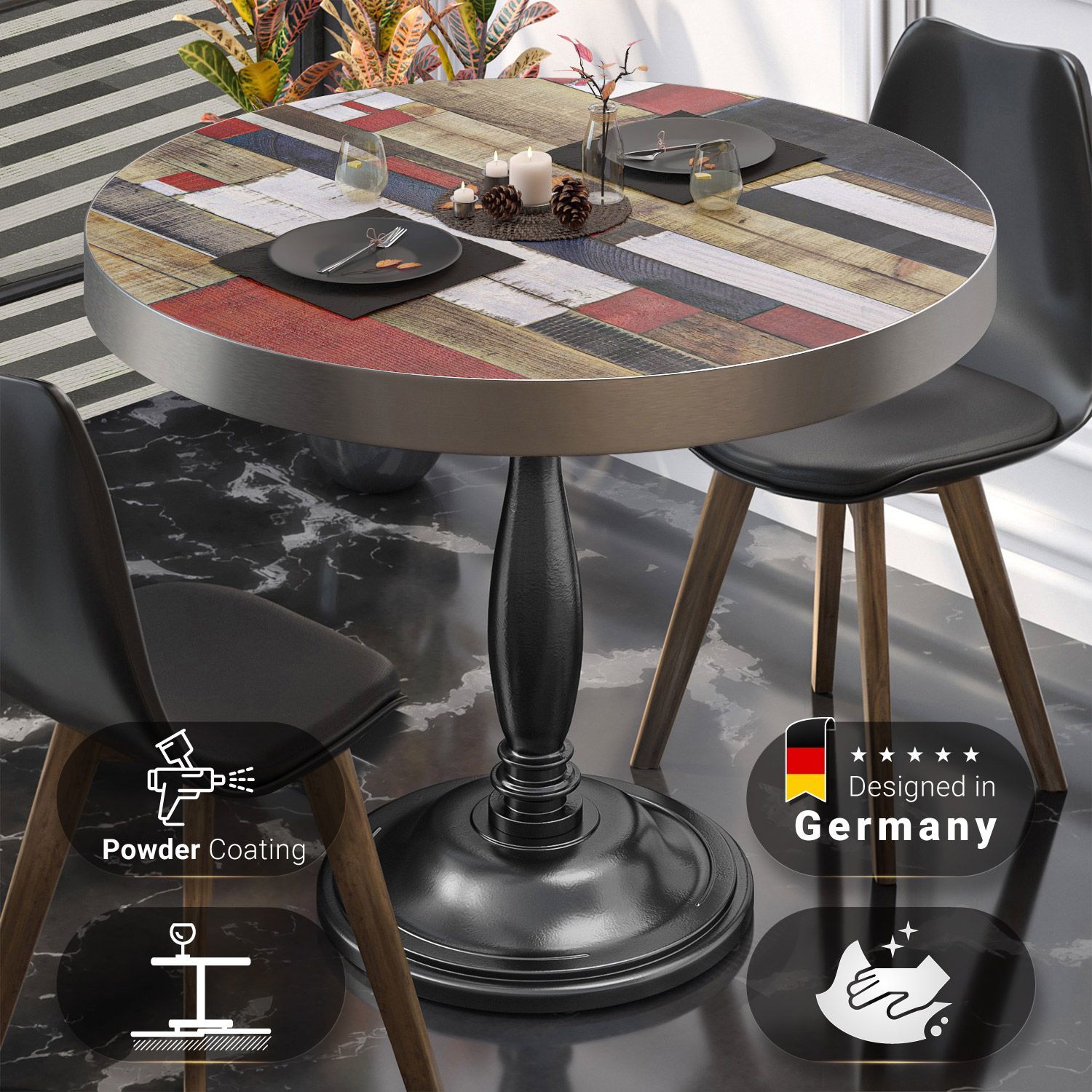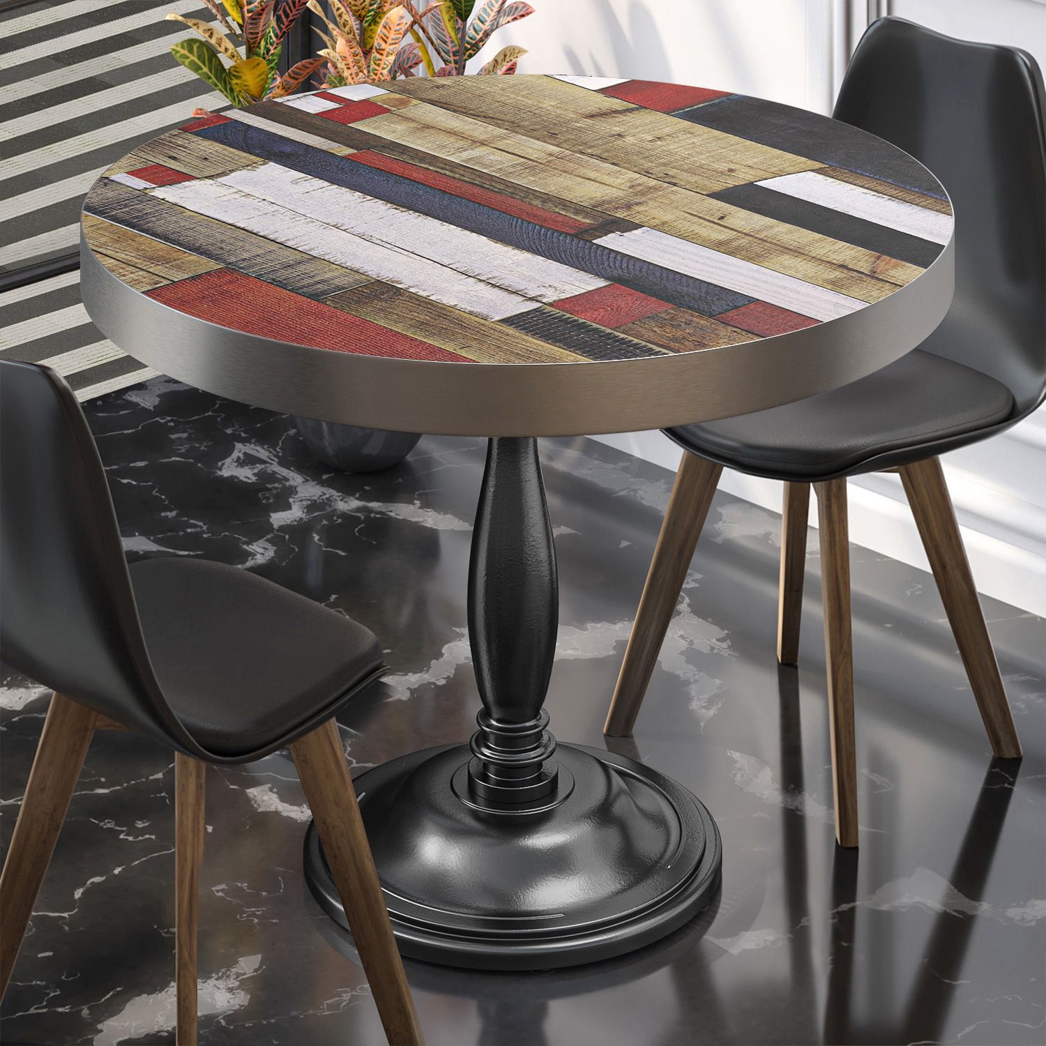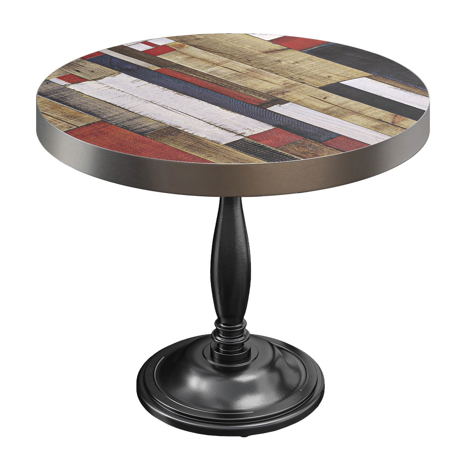 BD | Bistro Tisch | Ø 60 x 78 cm | Rund | Edelstahl Rand | Vintage Bunt / Schwarz |