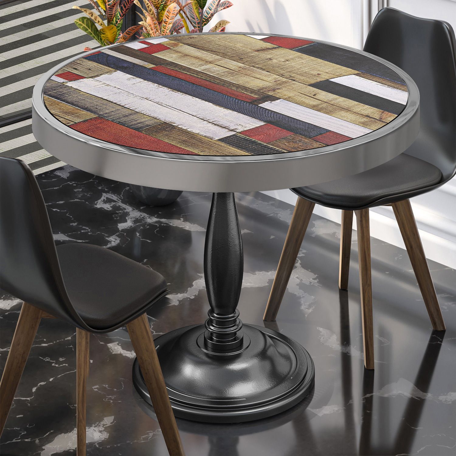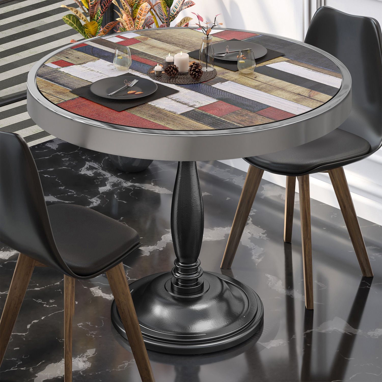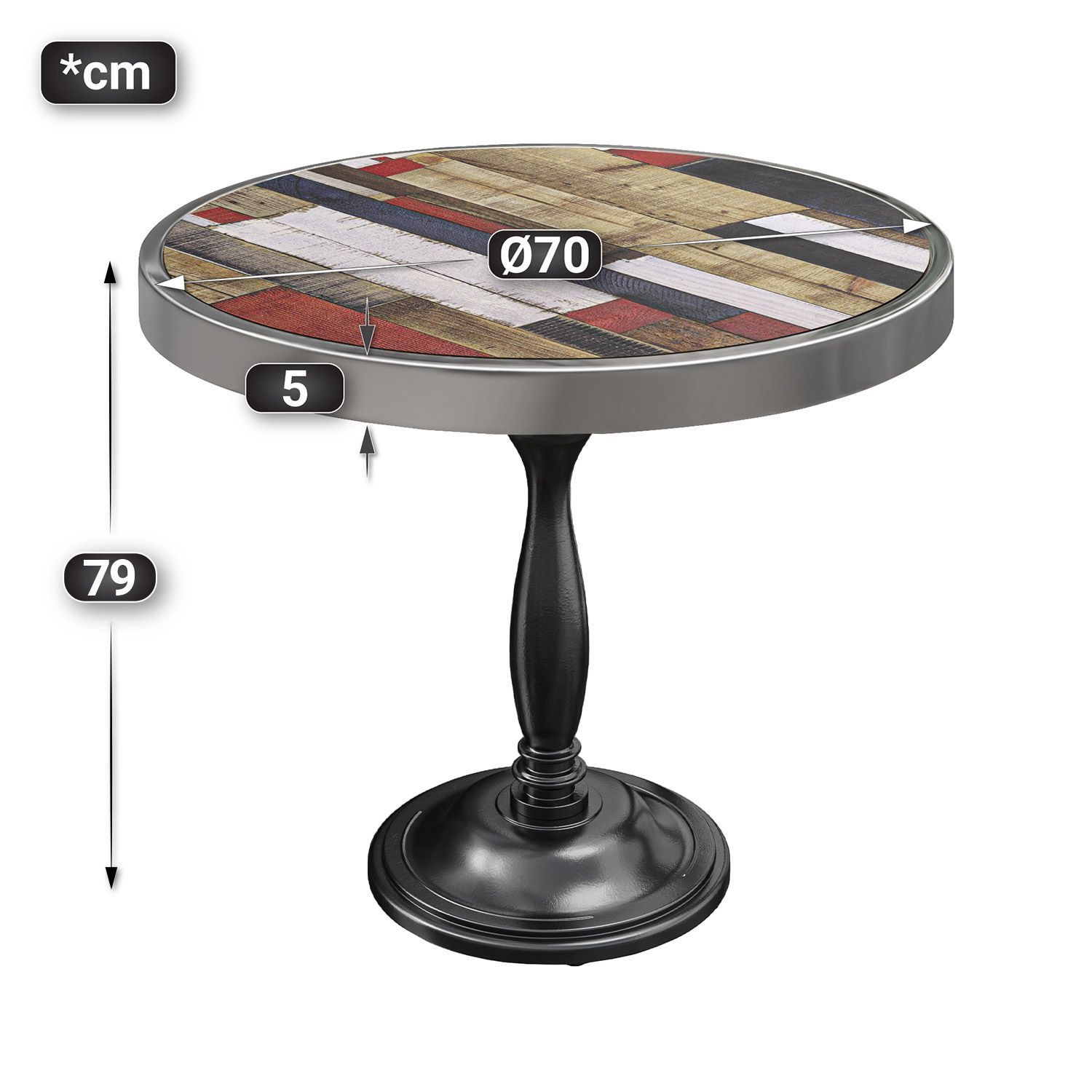 BD | Bistro Tisch | Ø 70 x 78 cm | Rund | Chromrahmen | Vintage Bunt / Schwarz | Bis