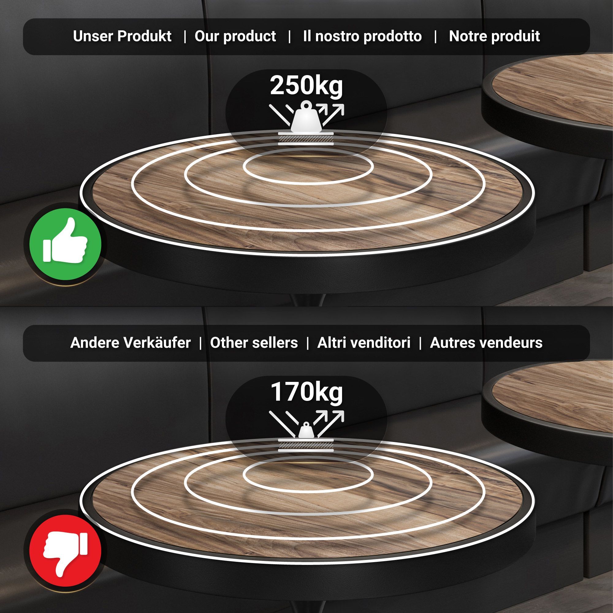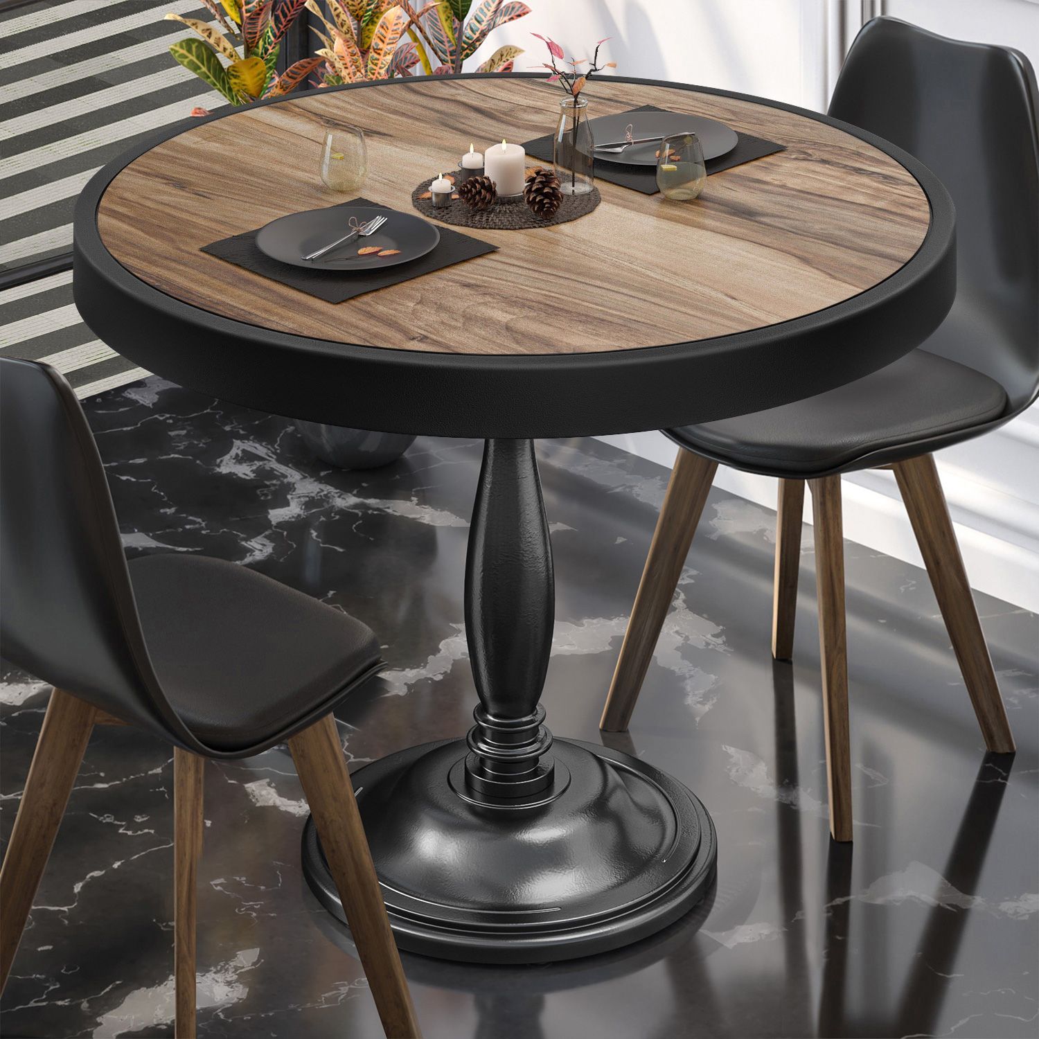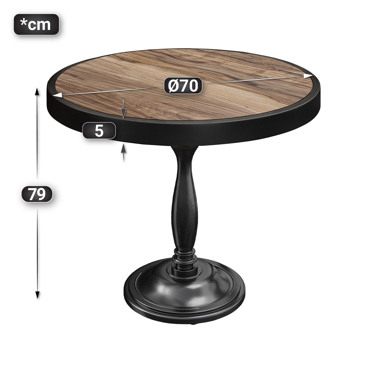 BD | Bistro Tisch | Ø 70 x 78 cm | Rund | Metallrahmen | Sheesham / Schwarz | Bistro