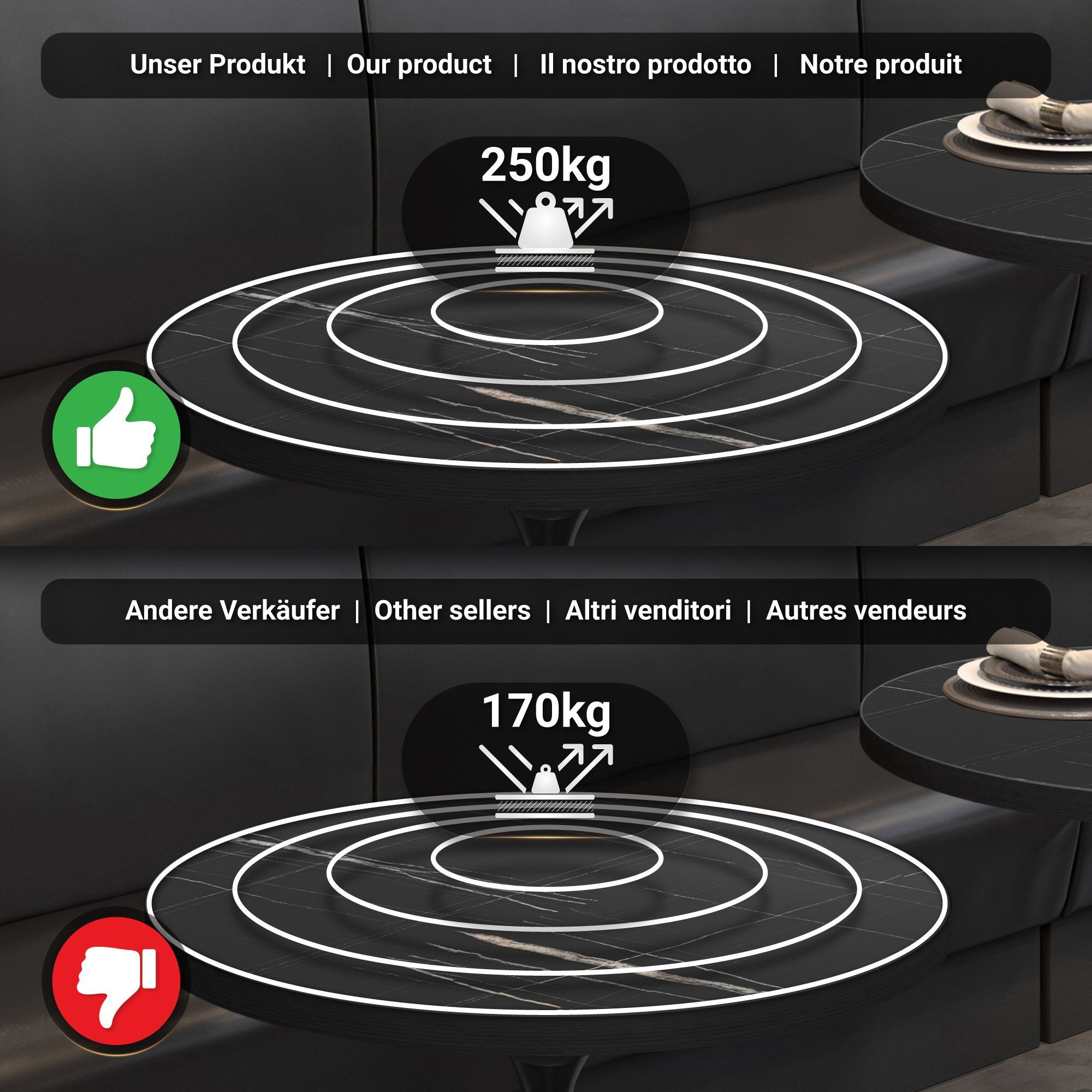 BD | Bistro Tisch | Ø 80 x 75,5 cm | Rund | Schwarzer Rand | Schwarz Marmor / Schwar