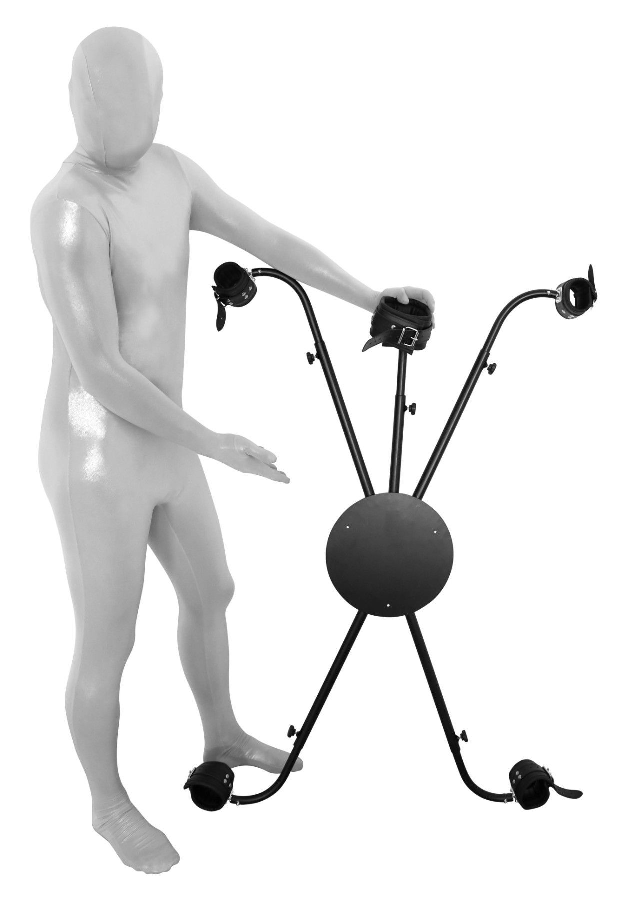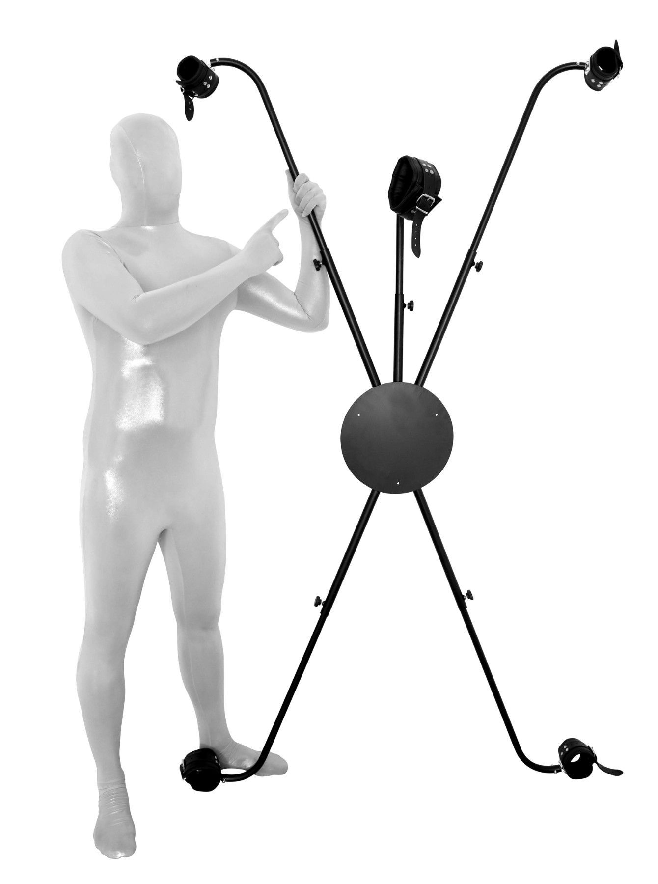 BDSM Metall Andreaskreuz verstellbar mit Bondage Fesseln - Stand Pranger