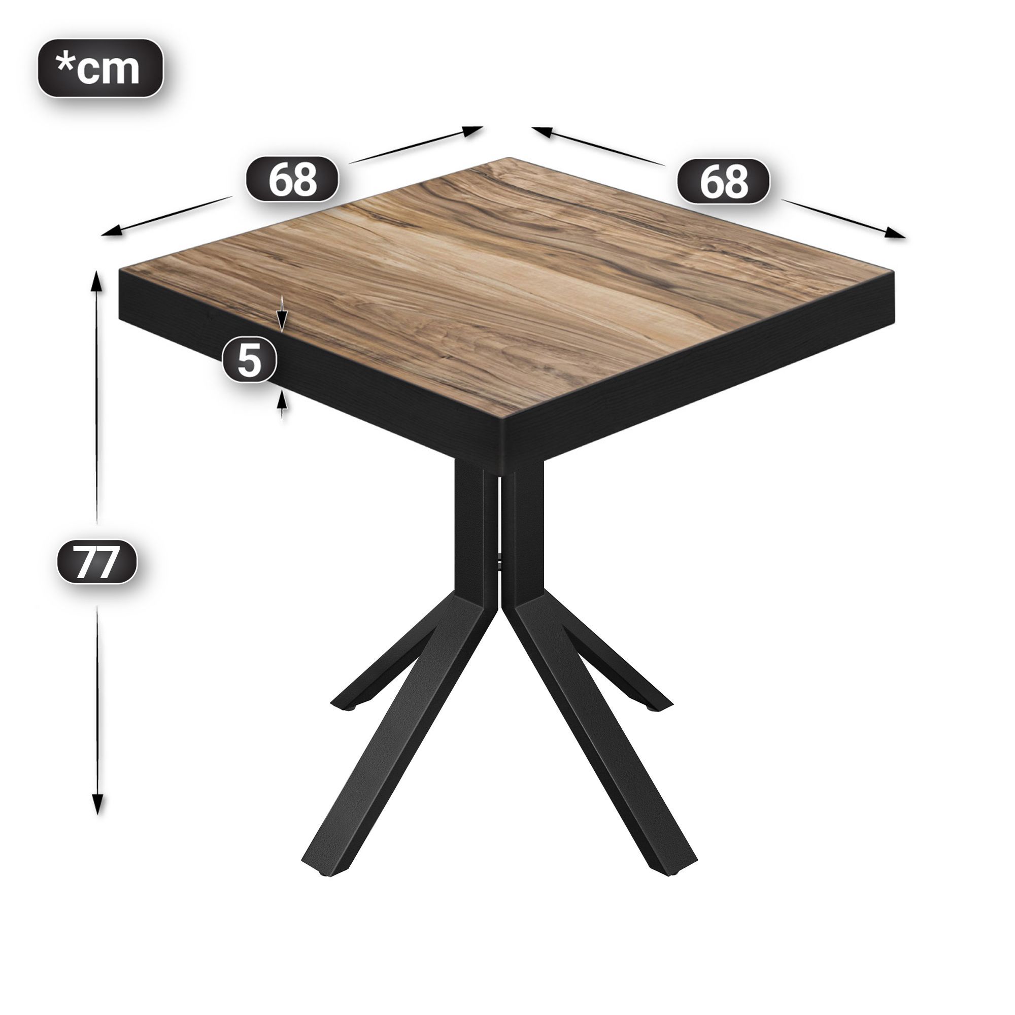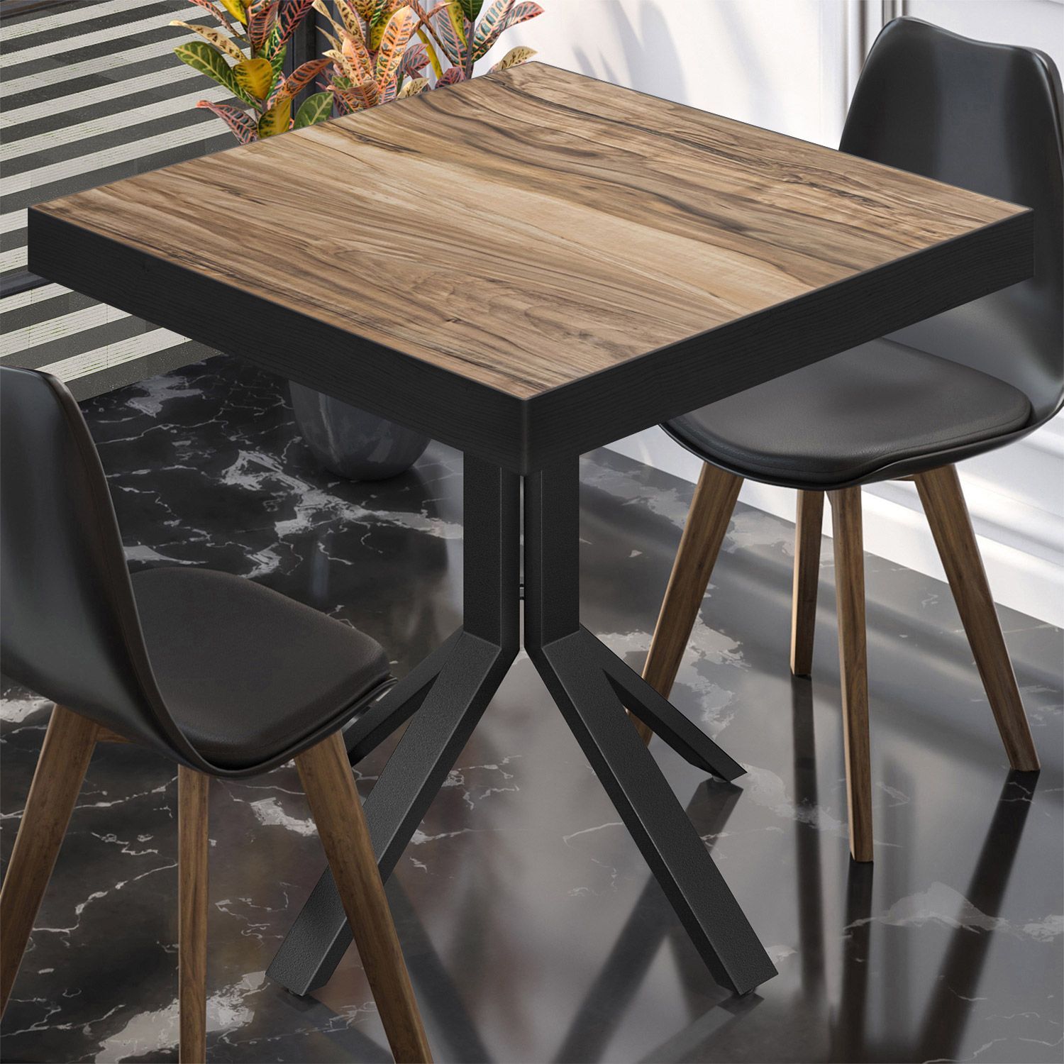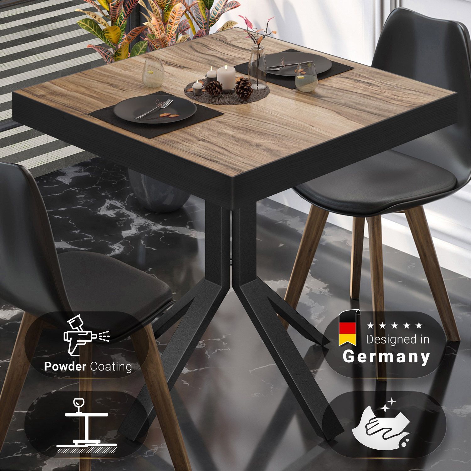 BE | Bistro Tisch | 70 x 70 x 77 cm | Quadratisch | Schwarz Rand | Sheesham / Schwar