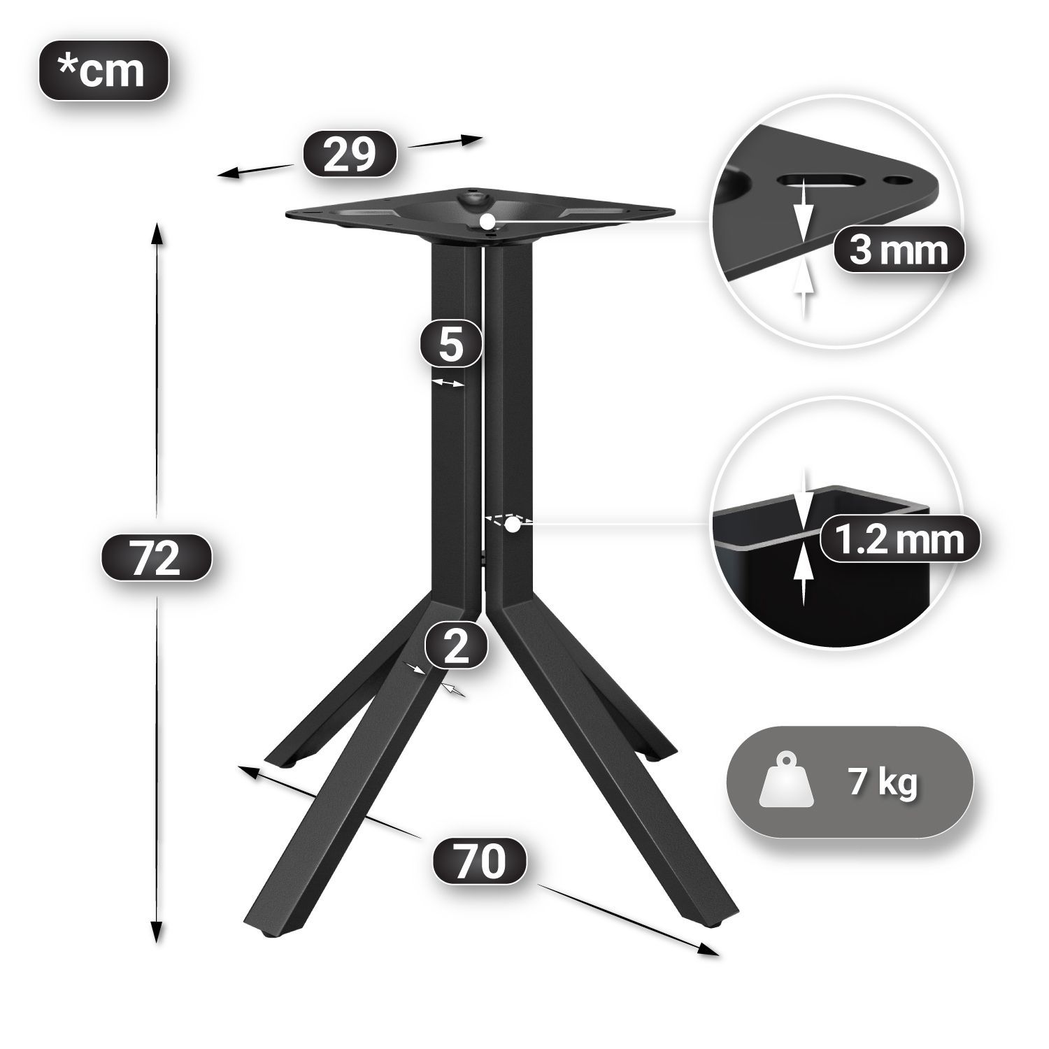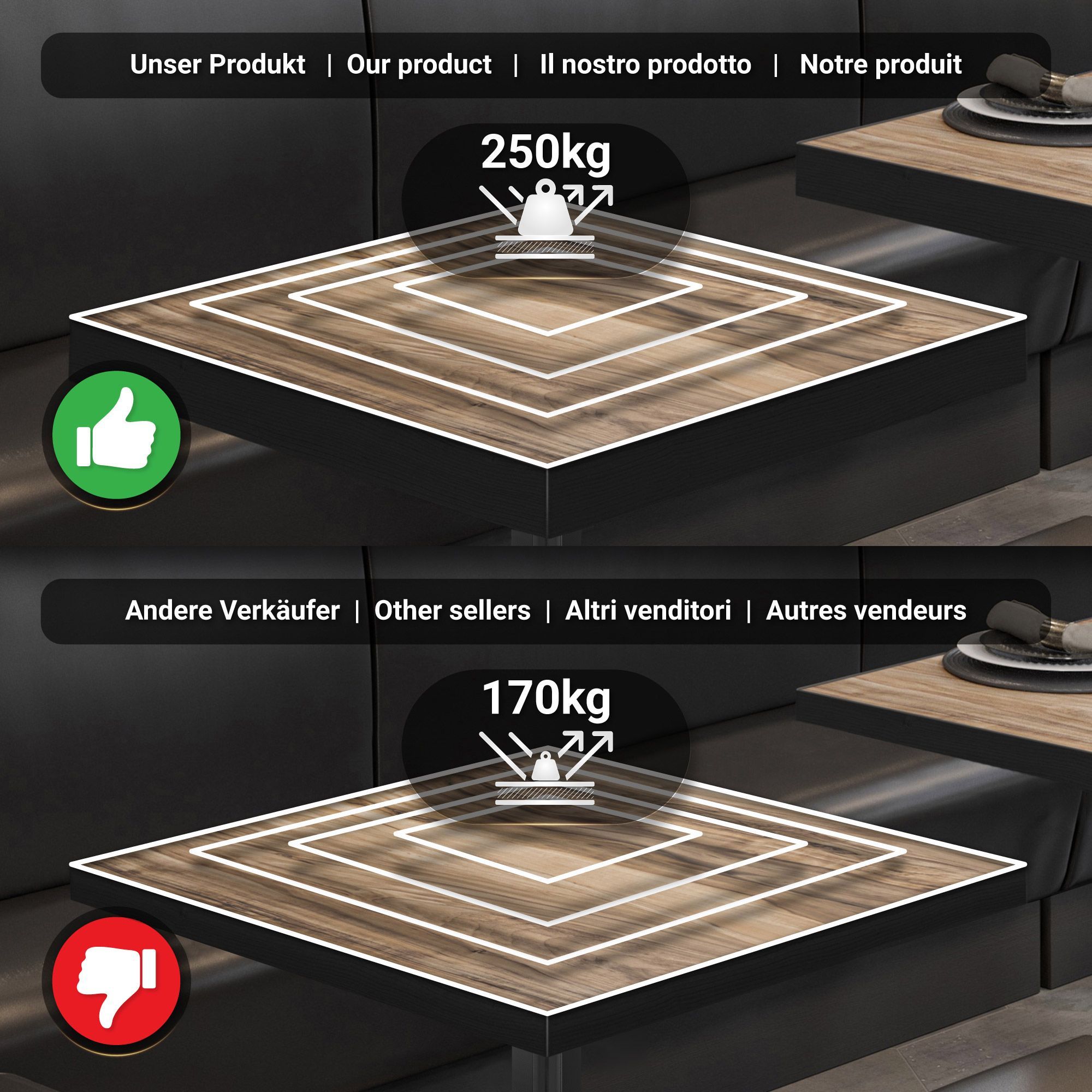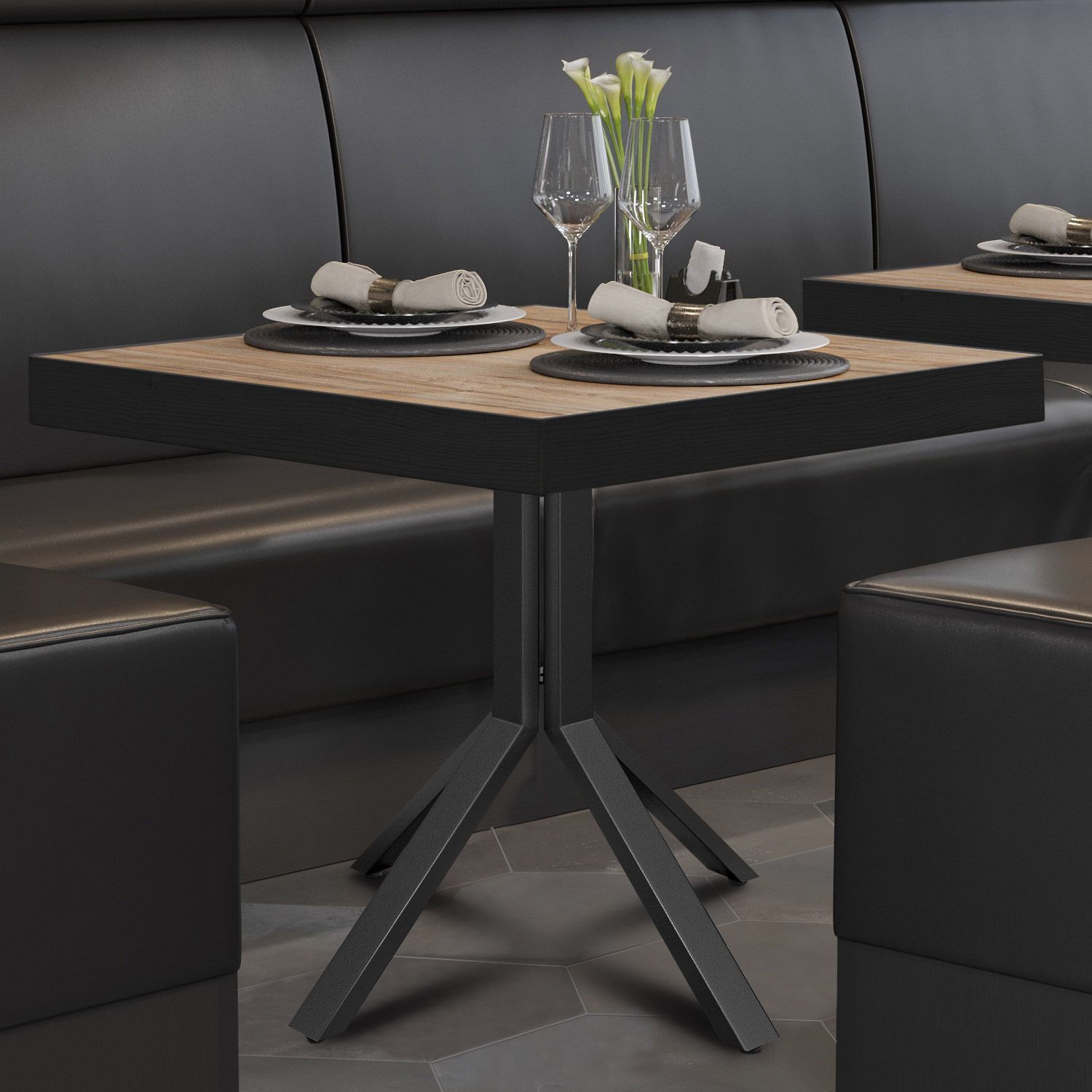BE | Bistro Tisch | 70 x 70 x 77 cm | Quadratisch | Schwarz Rand | Sheesham / Schwar