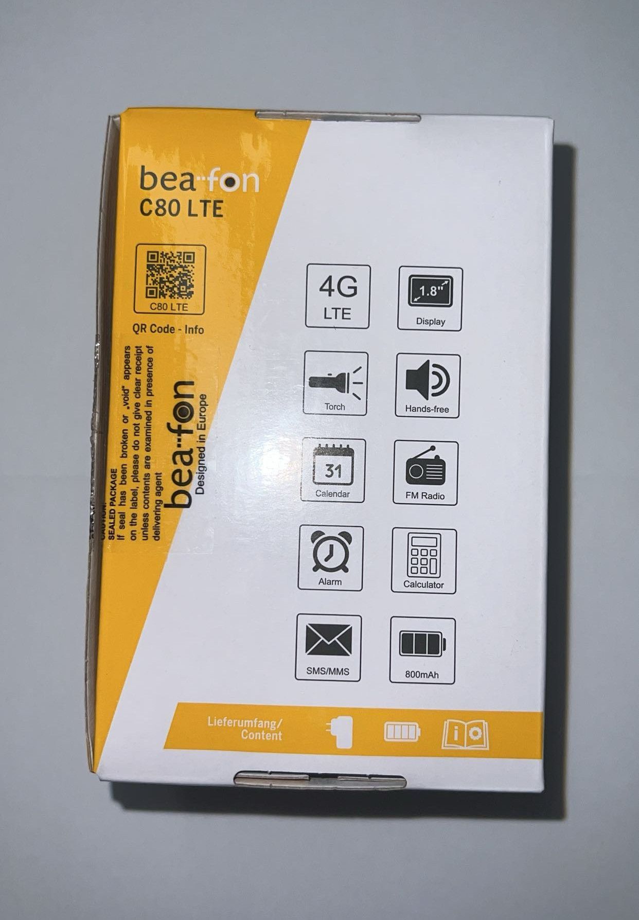 Zu Verkauf stehen 27 Tastenhandys der Marke Bea-fon, Modell C80 LTE Classic Line in der Farbe schwarz. Die Handys verfügen über 4G LTE Mobilfunknetz, 1,8 -Display, integrierte Taschenlampe, Freisprechfunktion, Kalender, FM Radio, Alarm, Taschenrechner, SMS MMS und einen 800 mAh Akku. Der Lieferumfan