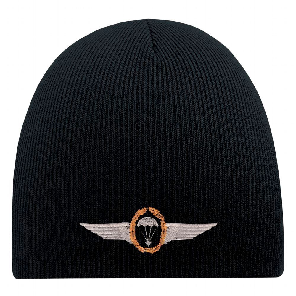 Beanie-Mütze mit Einstickung – Fallschirm Emblem Abzeichen – 55613 Schwarz