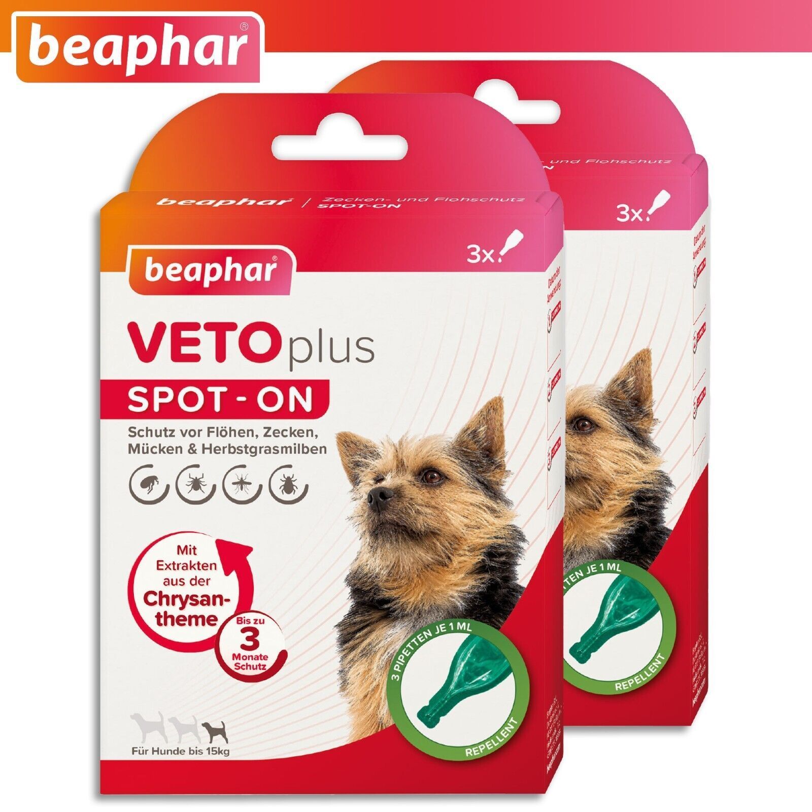 Beaphar Beaphar 2 Pack à 3 x 1ml VETOplus SPOT-ON Ungezieferschutz für Hunde bis 15 kg